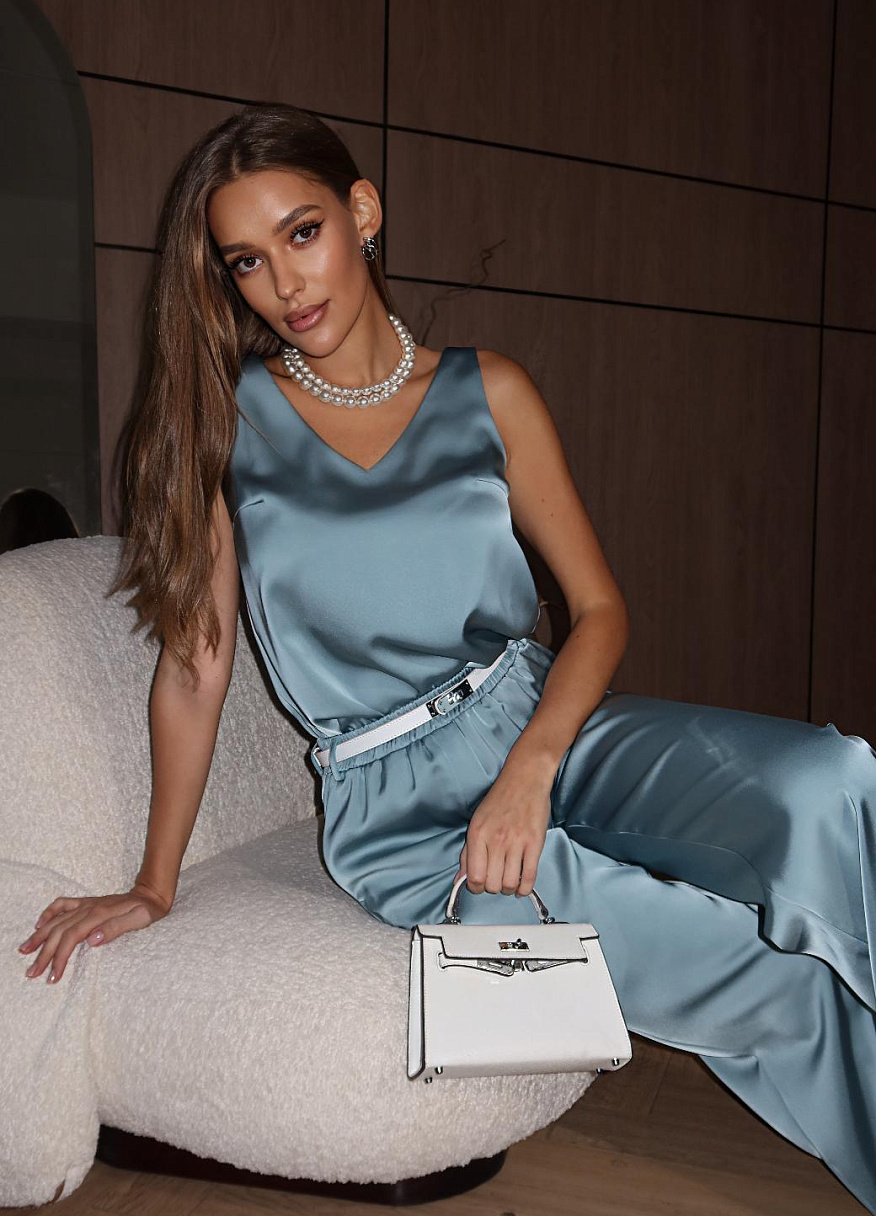 Роскошный топ «Ла Роса» создан, чтобы пленять с первого взгляда. Он выполнен из плотного шелка, чья богатая текстура и деликатный блеск создают эффект легкой загадочности. Этот топ спадает с чувственным, благородным отвесом, словно обволакивая фигуру и добавляя ей аристократического величия.