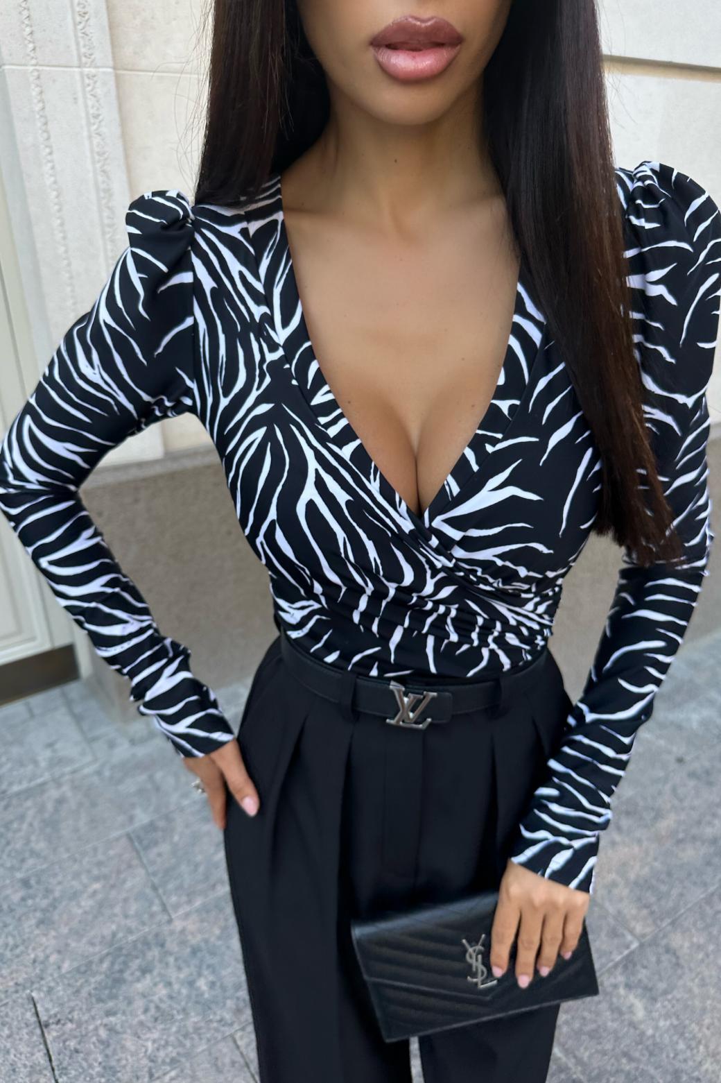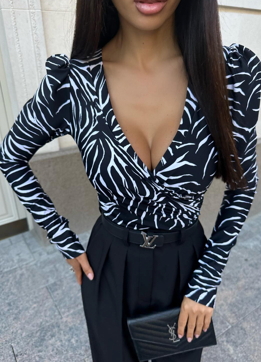 Блузка «Сафари» — это воплощение дикой страсти и смелого шика, созданное для тех, кто готов покорять мир. Каждый её элемент кричит об уверенности и утончённой сексуальности. Анималистический принт как будто оживает на теле, притягивая взгляды и вызывая восхищение. Глубокий, чувственный разрез с двусторонним запахом не просто подчёркивает талию, он создает тонкую интригу, оставляя пространство для воображения. Приталенный силуэт с изящными вытачками на спинке обнимает фигуру так, будто был сшит специально для вас. Мягкий, эластичный материал струится по телу, создавая идеальную посадку, которая делает каждое движение плавным и соблазнительным. Пышные рукава с акцентом на плечах добавляют драматичности образу, утончённо сужаясь к запястью и создавая эффект королевской элегантности. Эта блузка — настоящий хамелеон вашего гардероба. Сочетайте её с брюками для строгого, но сексуального образа, с юбкой — для непринужденной вечеринки, с шортами или легинсами — для дерзкого и ультрамодного лука.