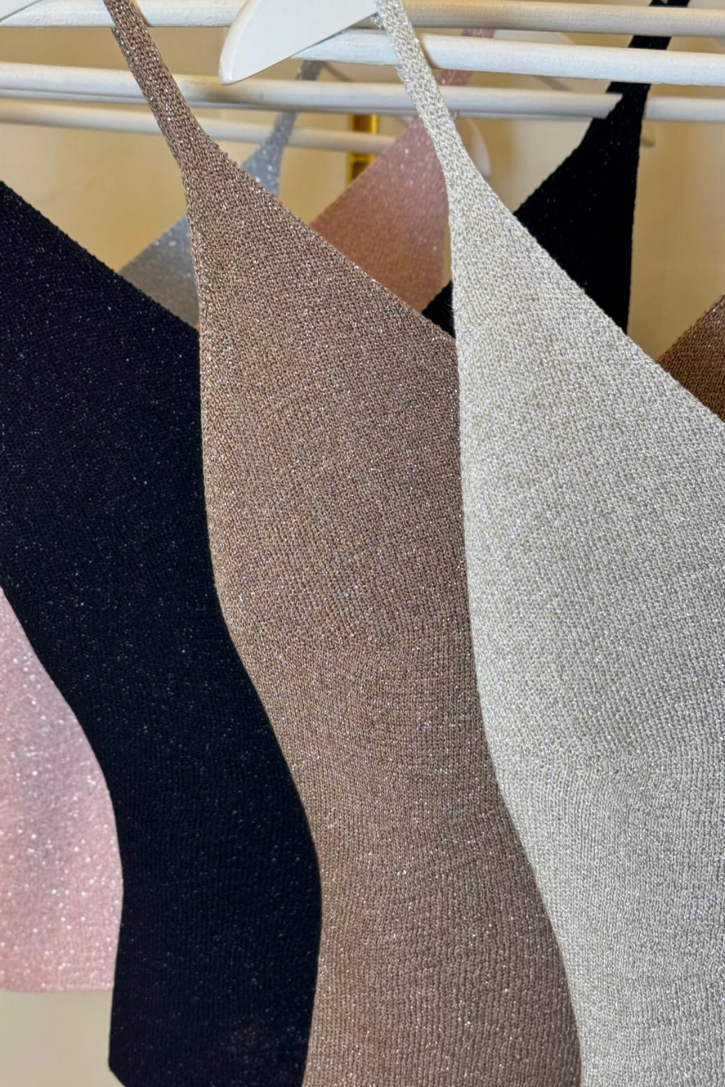 Топ «Беллини» прост по форме, но безупречен в нюансах. Утонченные бретели едва касаются плеч, оставляя лишь ощущение лёгкости. Глубокий вырез выстроен точно и деликатно — он подчёркивает линию ключиц и визуально облегчает силуэт, не перегружая образ.