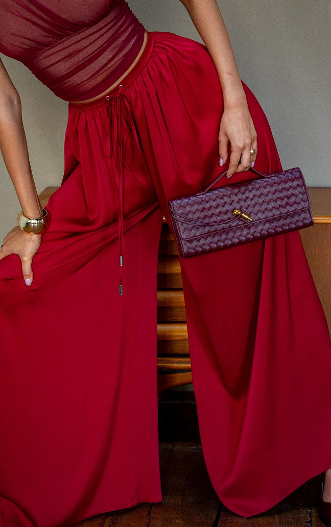 Приталенный силуэт, игра диагоналей и мягких изгибов, драпировки по бокам. Всё работает на один результат - силуэт, от которого невозможно оторвать взгляд.