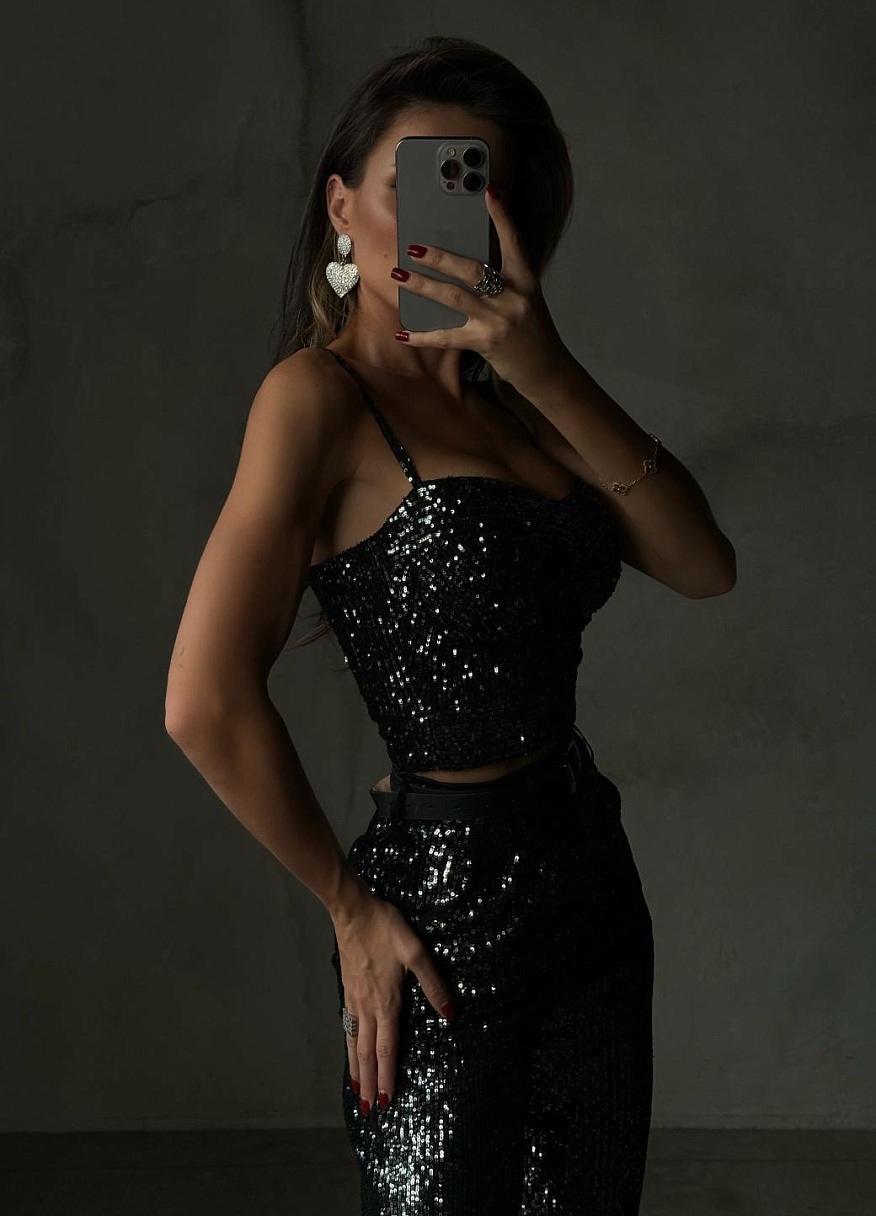 Элегантный топ «Ботичелли» с эффектным вырезом и изящными тонкими бретелями, регулирующимися по длине. Визуальный объем вверху создается за счет навесной планки, что имеет разнонаправленный крой с основной частью лифа. Выполненное в форме «чаши», изделие обеспечивает комфортную посадку. А укороченная длина делает акцент на талии. По спинке расположена разъемная застежка-молния. Топ станет яркой деталью в праздничных образах, а для повседневности сбалансируйте сияние модели простыми джинсами, строгими юбками или лаконичными брюками.