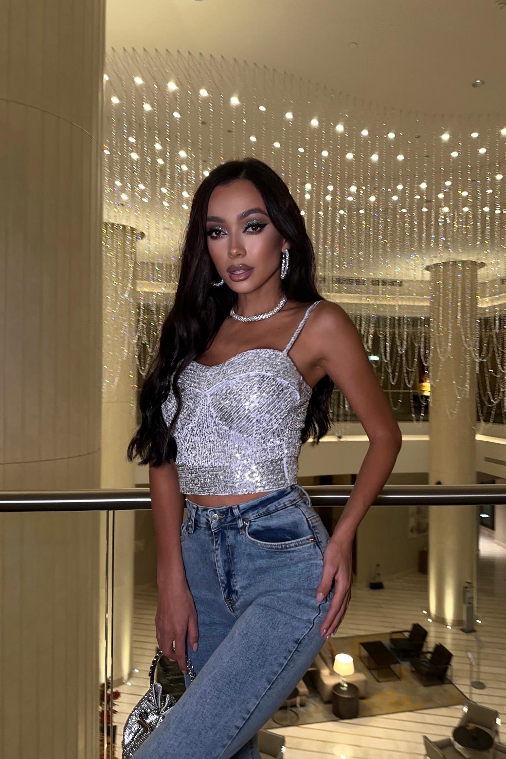 Элегантный топ «Ботичелли» с эффектным вырезом и изящными тонкими бретелями, регулирующимися по длине. Визуальный объем вверху создается за счет навесной планки, что имеет разнонаправленный крой с основной частью лифа. Выполненное в форме «чаши», изделие обеспечивает комфортную посадку. А укороченная длина делает акцент на талии. По спинке расположена разъемная застежка-молния. Топ станет яркой деталью в праздничных образах, а для повседневности сбалансируйте сияние модели простыми джинсами, строгими юбками или лаконичными брюками.
