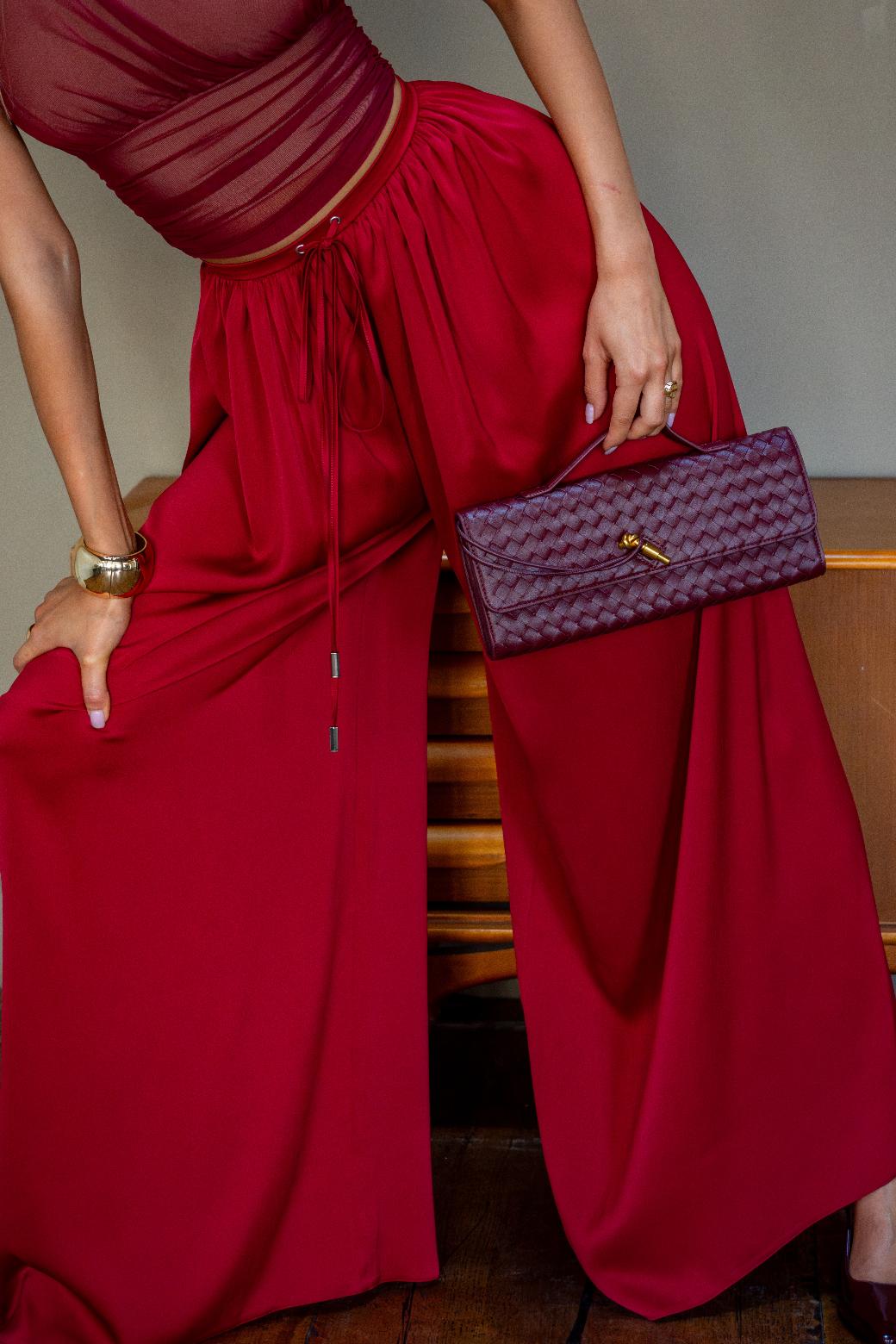 Податливая ткань играет с каждым шагом. Плавные, щедрые драпировки, словно сотканы из движения — они струятся за вами, оставляя ощущение театральной загадки.
