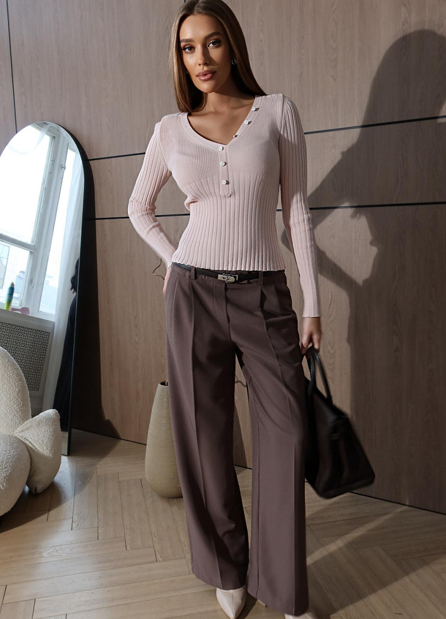 «Кэмерон» – это брюки, которые подстраиваются под твое настроение. Сегодня ты носишь их высоко, подчёркивая талию и создавая утончённый, деловой образ, а завтра — расслабленно, свободно, немного ниже, чтобы добавить нотку дерзости и уверенности. Эти брюки легко комбинируются с разными элементами гардероба: обтягивающий топ, объемный свитер, шёлковая блузка — каждый раз новый, безупречный образ. С ремнём они выглядят строго и стильно, а без него — непринуждённо и свободно.
