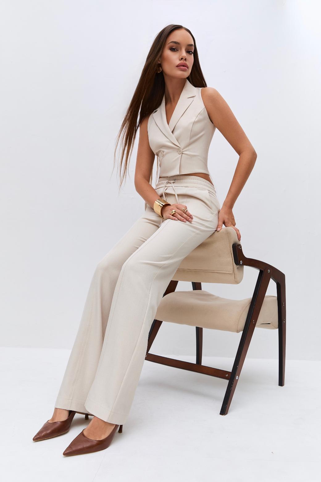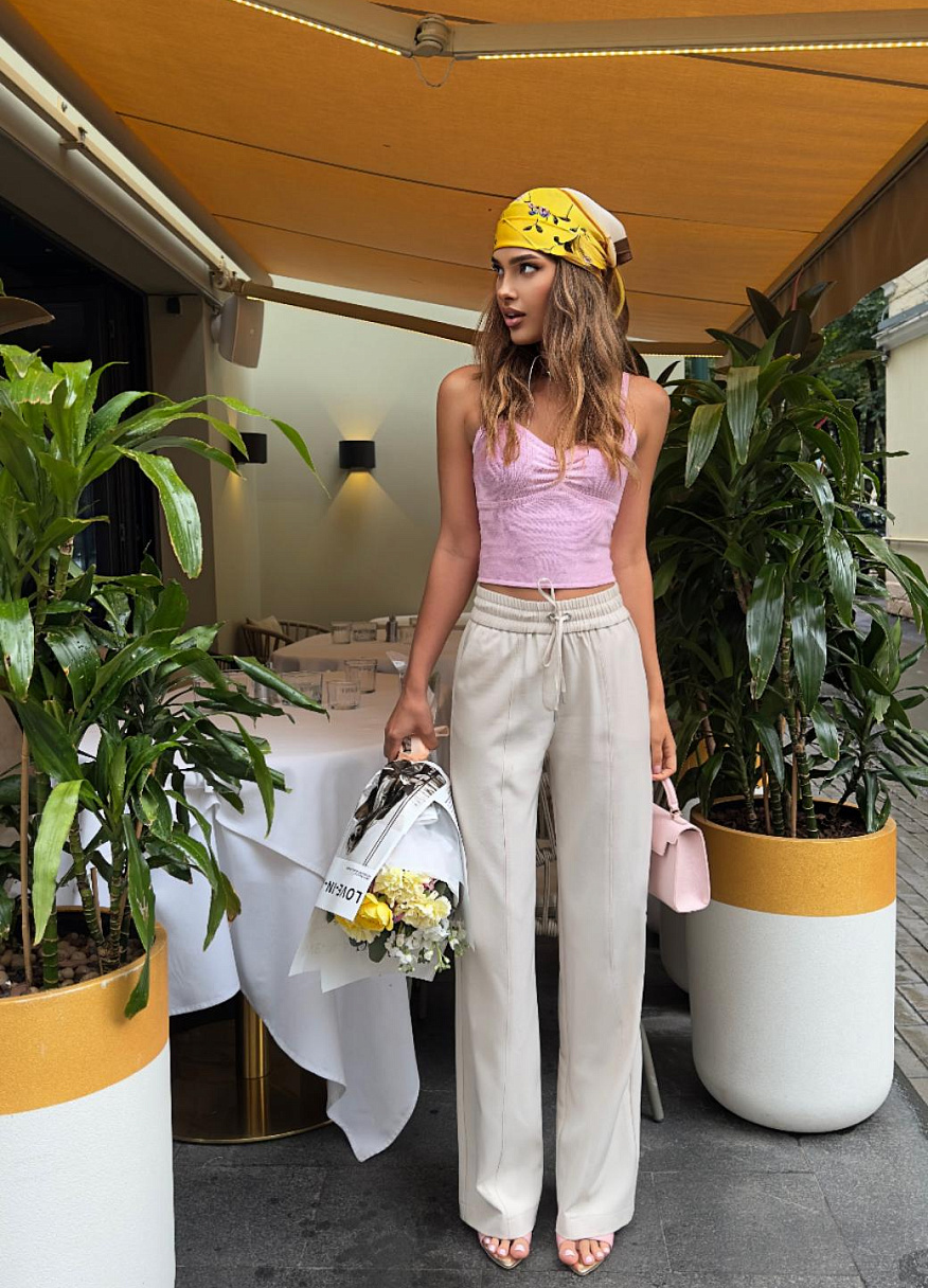 Брюки "Монсун" бежевые — дизайнерская женская одежда от Яны Лукачер | Российское производство