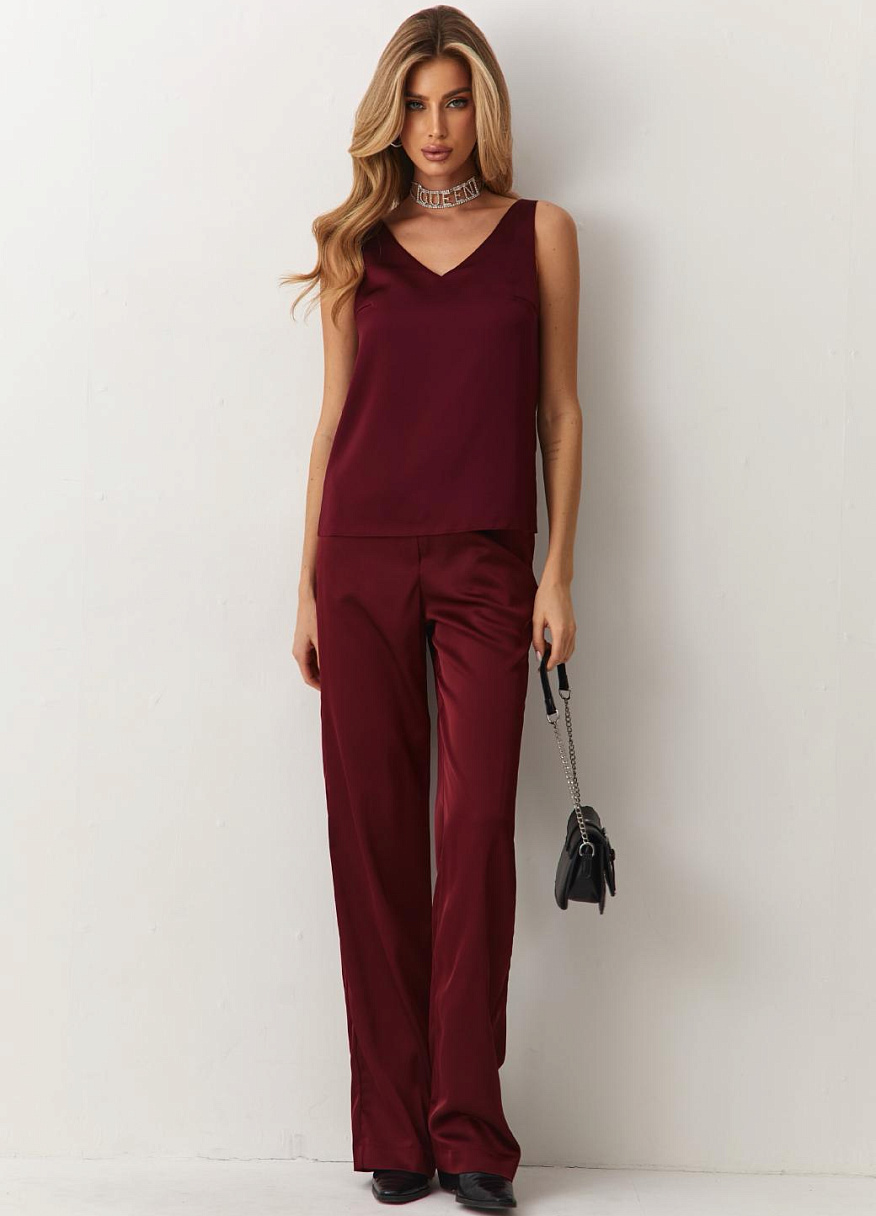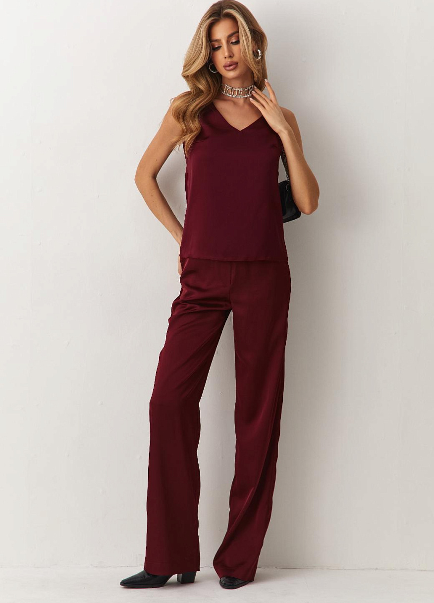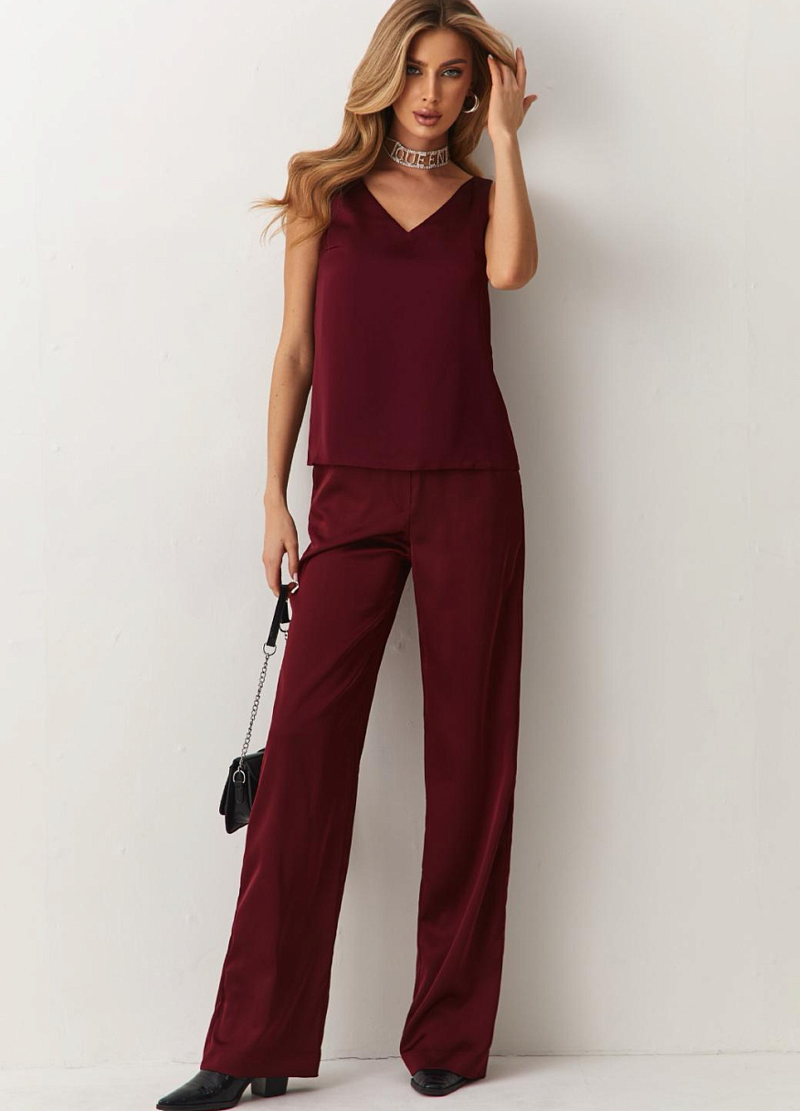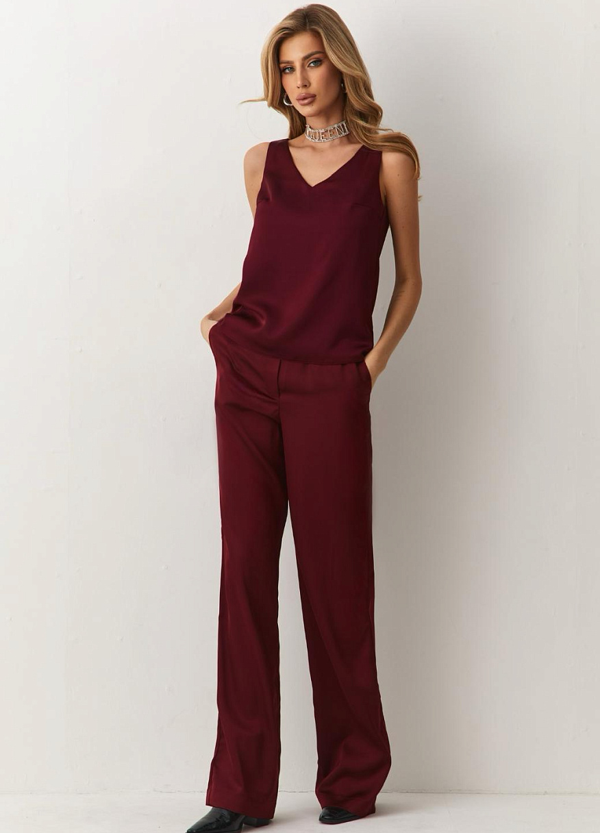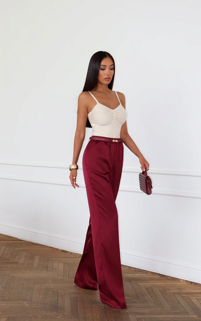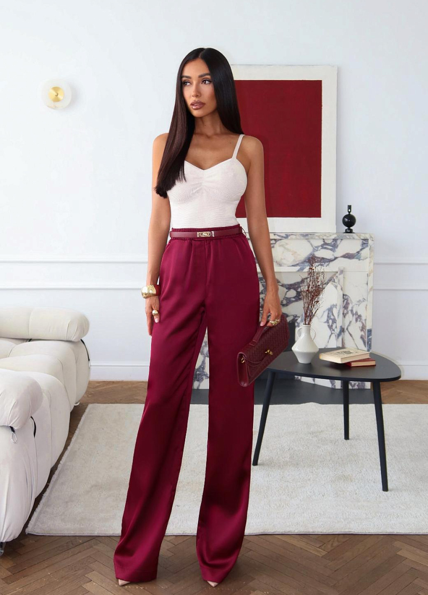 Брюки "Силк" бордовые — дизайнерская женская одежда от Яны Лукачер | Российское производство