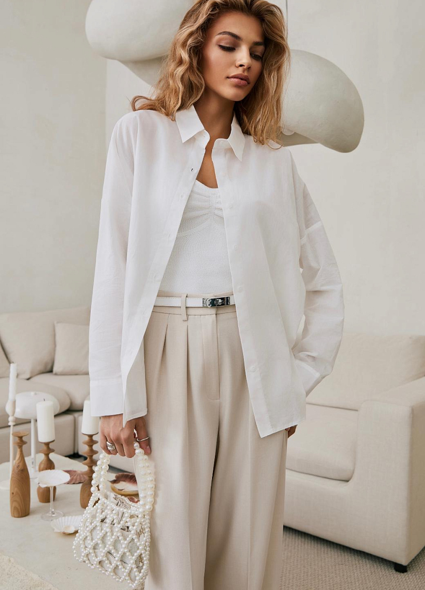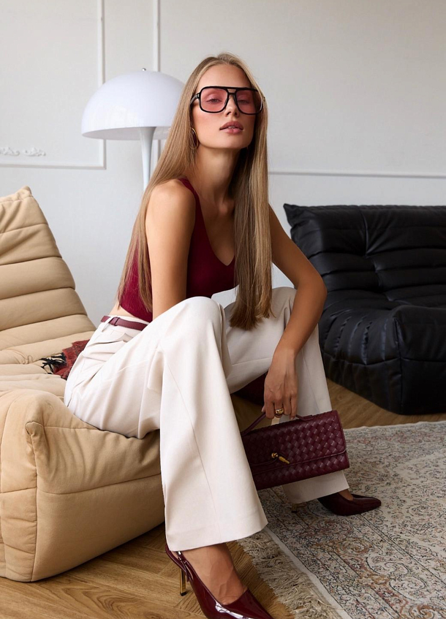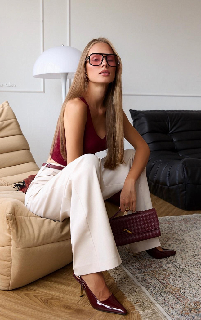 Брюки «Сингапур» — это утонченный стиль с характером. Они моментально становятся фаворитом в гардеробе благодаря безупречной посадке и продуманным деталям. Каждая складка, каждый защип работают на создание совершенного силуэта, который подчёркивает достоинства любой фигуры. Что делает «Сингапур» по-настоящему уникальными, так это их высокая посадка. Эти брюки словно созданы для тех, кто ценит строгую элегантность с легким налётом дерзости. Высокая талия позволяет заправить в них блузку или водолазку, добавив в образ нотки уверенности и изысканности, как будто сошедшие с модных подиумов Нью-Йорка или Лондона. Эти брюки не просто дополняют образ — они создают его, открывая безграничные возможности для модных экспериментов. «Сингапур» — это идеальный баланс между строгим классическим стилем и креативной свободой, предлагающий вам почувствовать себя иконой стиля.