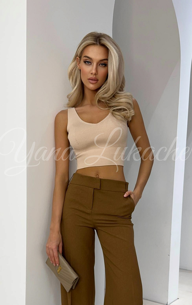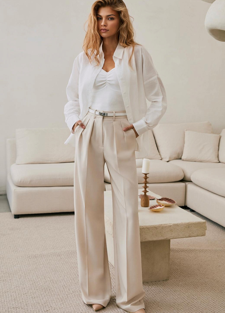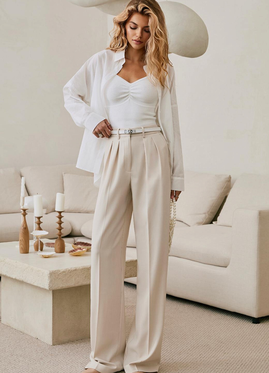 Брюки "Сингапур" бежевые — дизайнерская женская одежда от Яны Лукачер | Российское производство