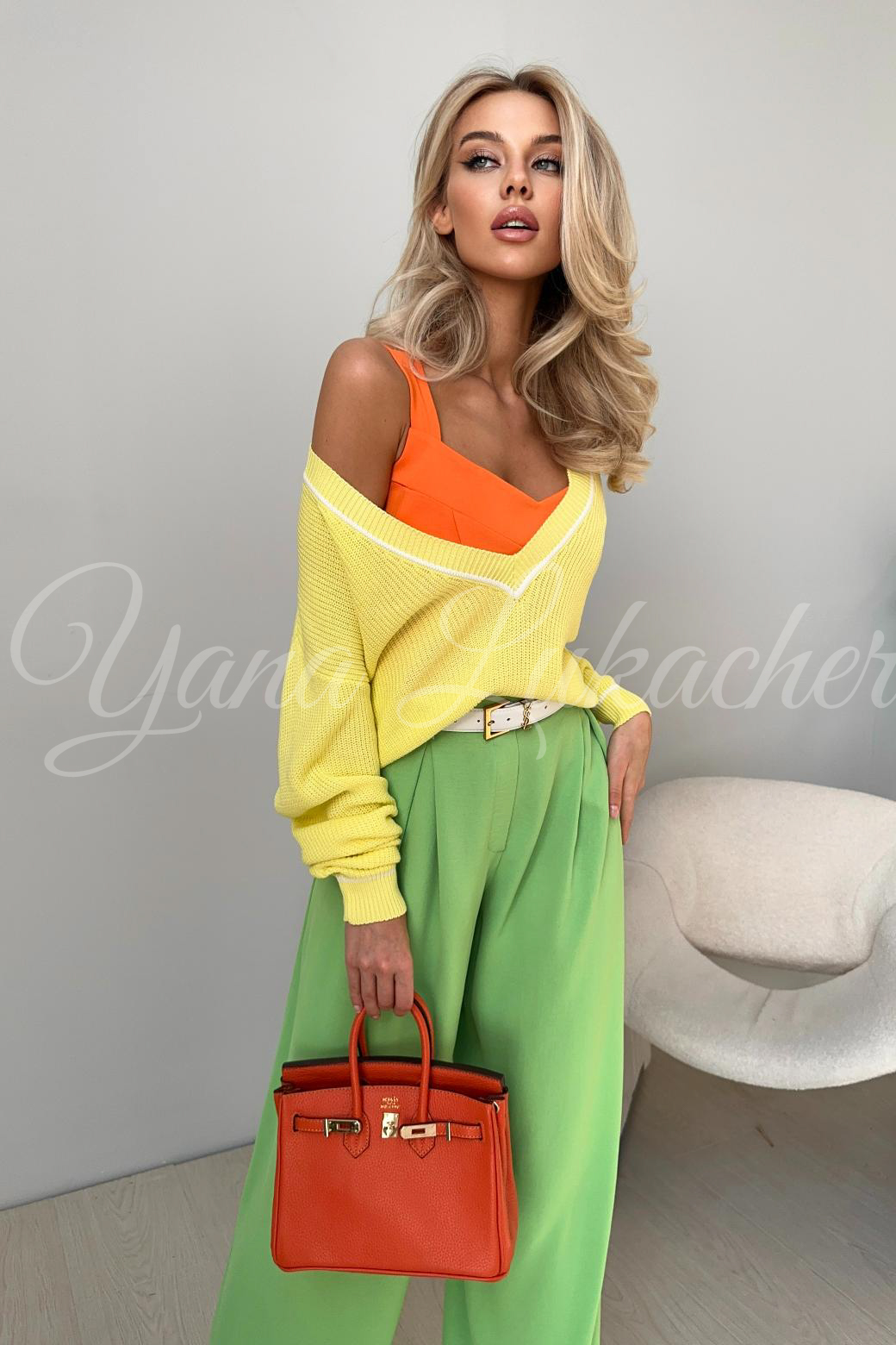 Брюки "Сопрано" салатовые — дизайнерская женская одежда от Яны Лукачер | Российское производство
