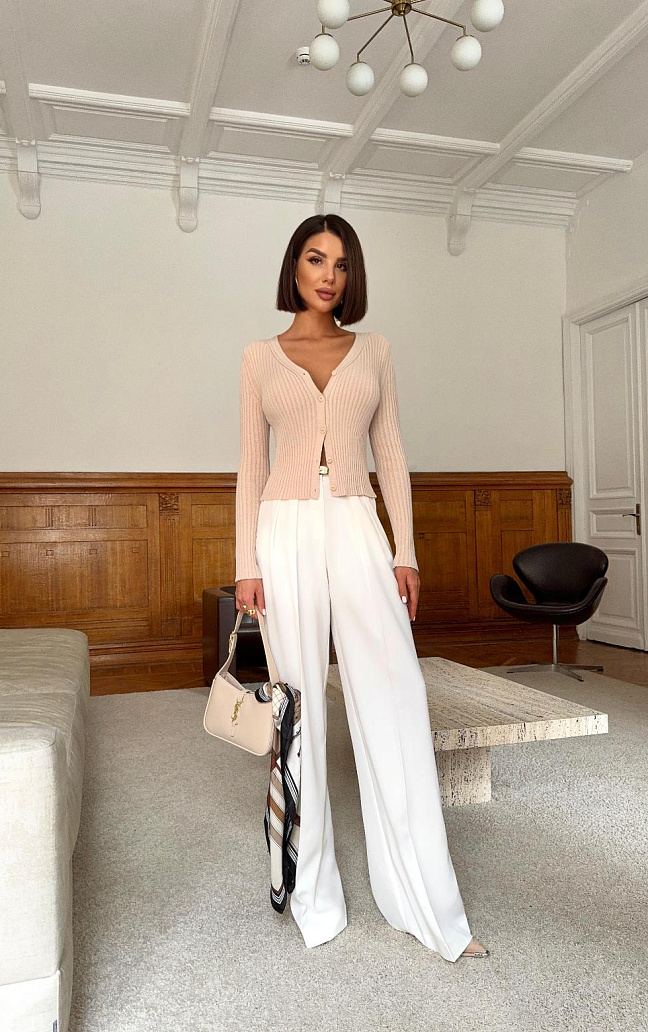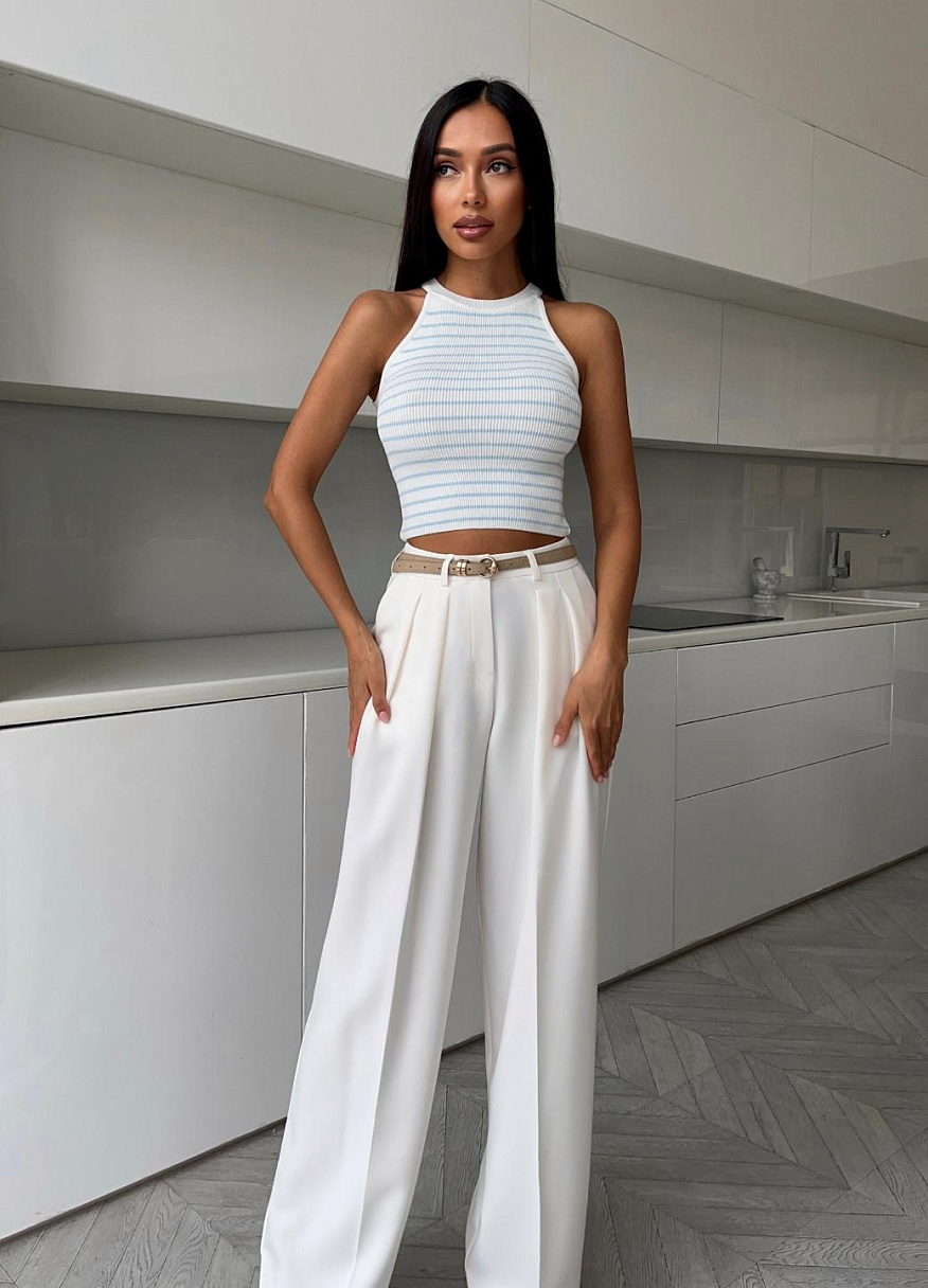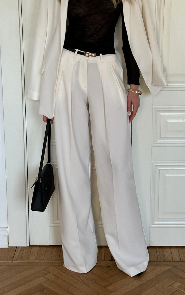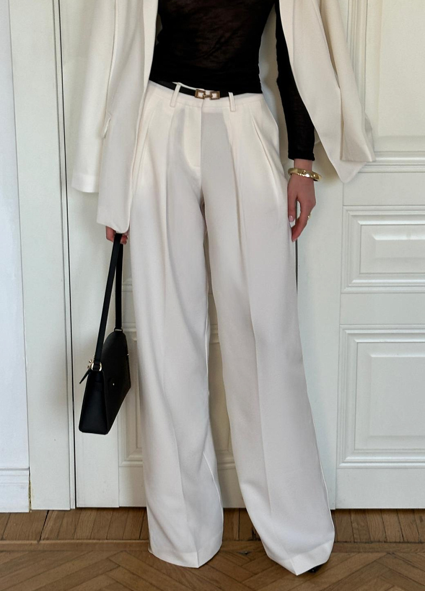Брюки "Уолл-Стрит" белые — дизайнерская женская одежда от Яны Лукачер | Российское производство