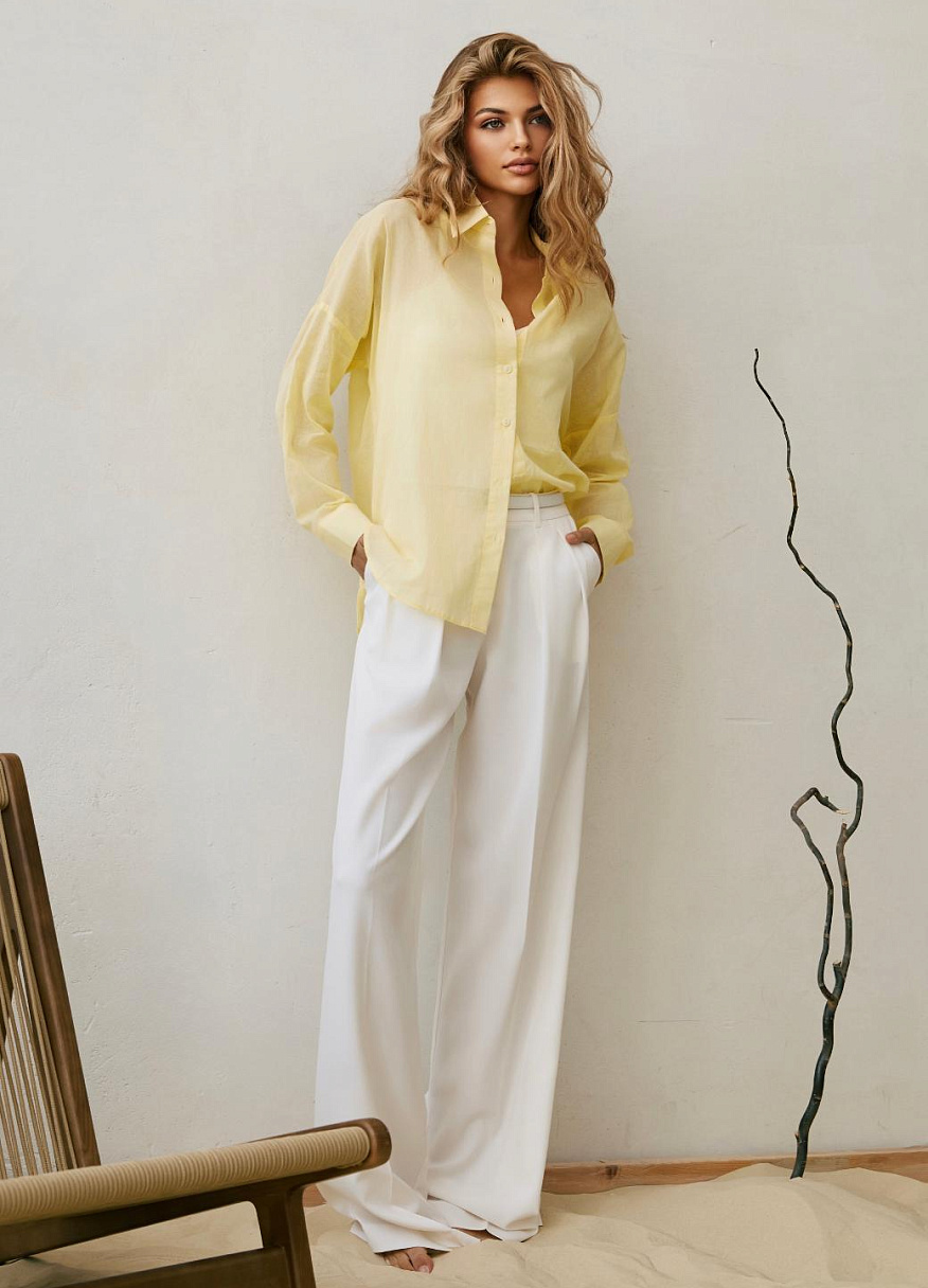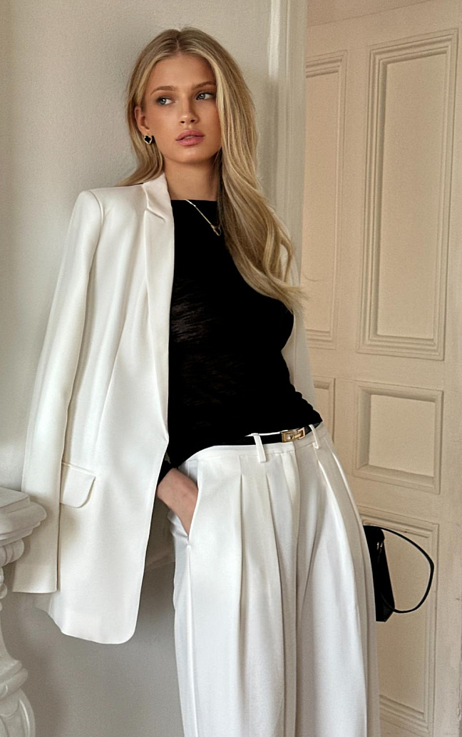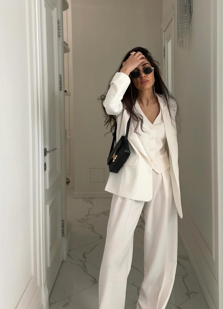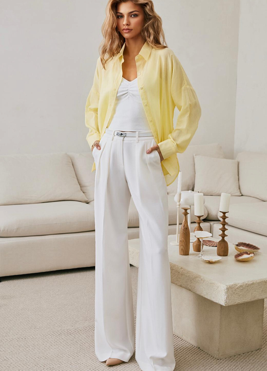 Брюки "Уолл-Стрит" белые — дизайнерская женская одежда от Яны Лукачер | Российское производство