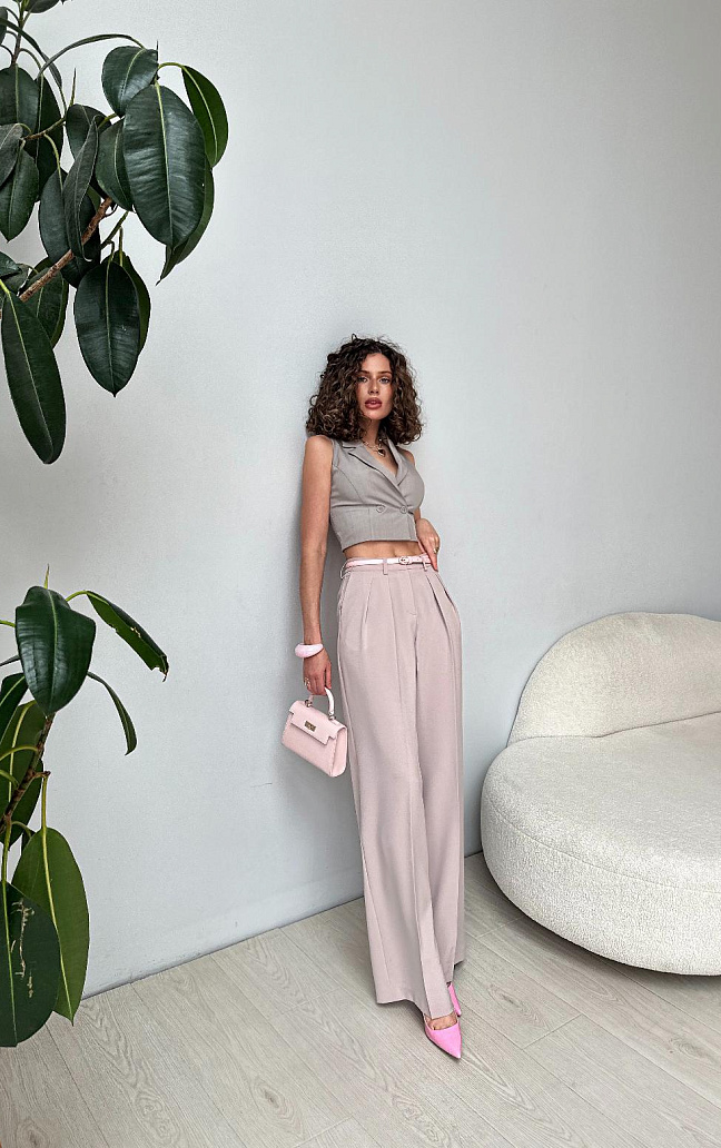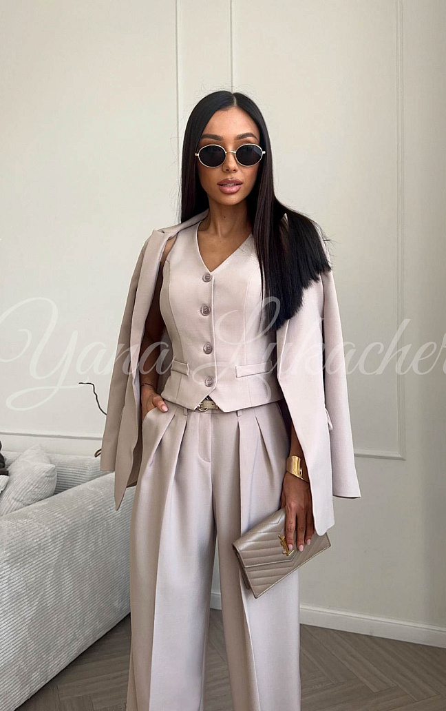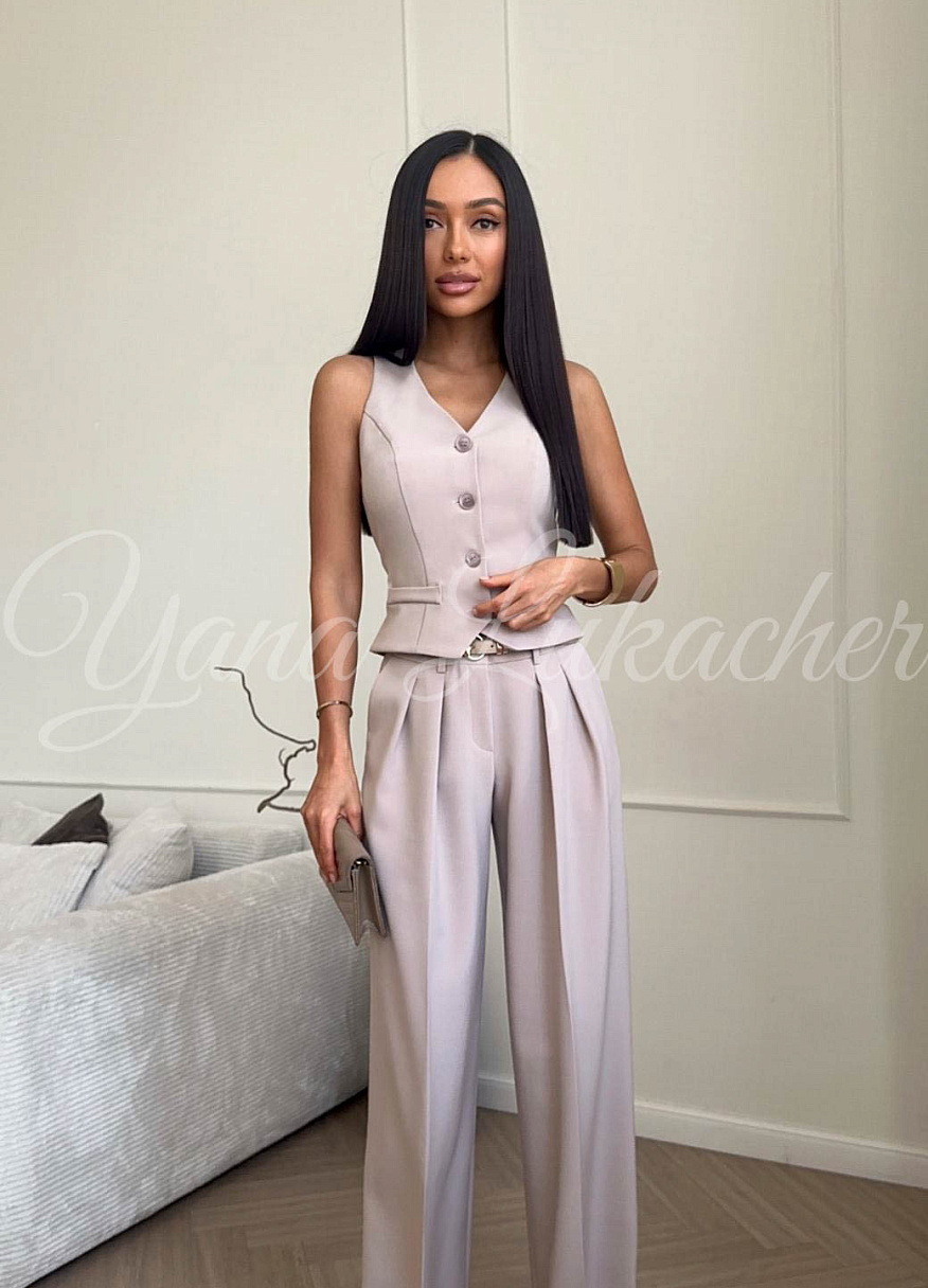 Брюки "Уолл-Стрит" бежевые — дизайнерская женская одежда от Яны Лукачер | Российское производство