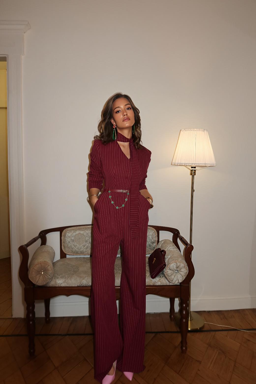 Комбинезон "Тео" бордовый — дизайнерская женская одежда от Яны Лукачер | Российское производство