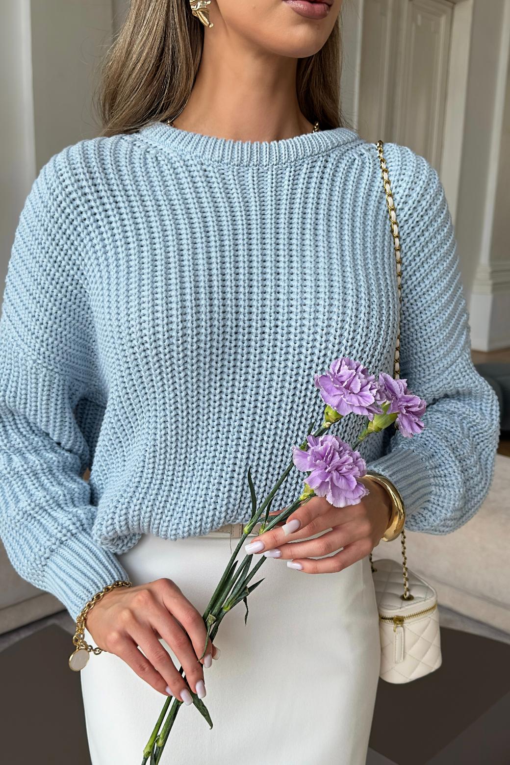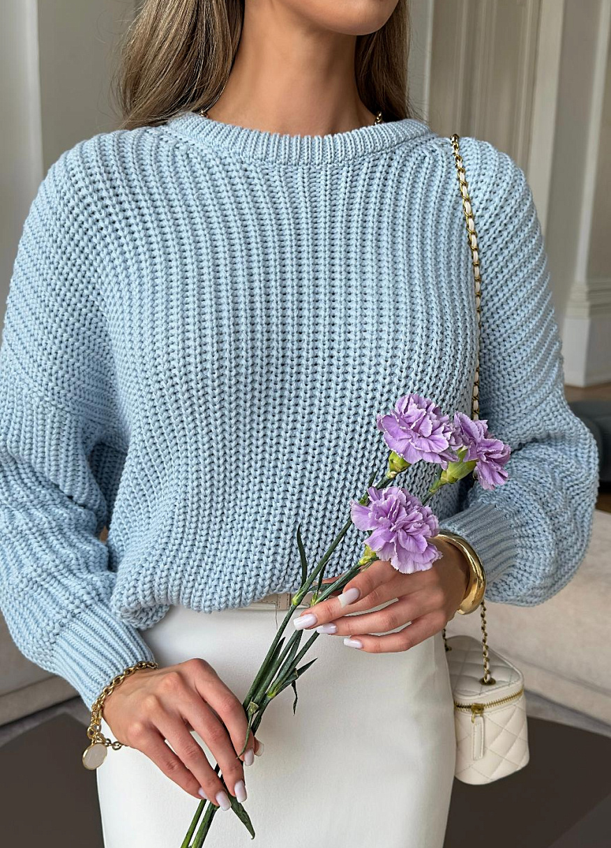 Свитер "Барселона" голубой — дизайнерская женская одежда от Яны Лукачер | Российское производство