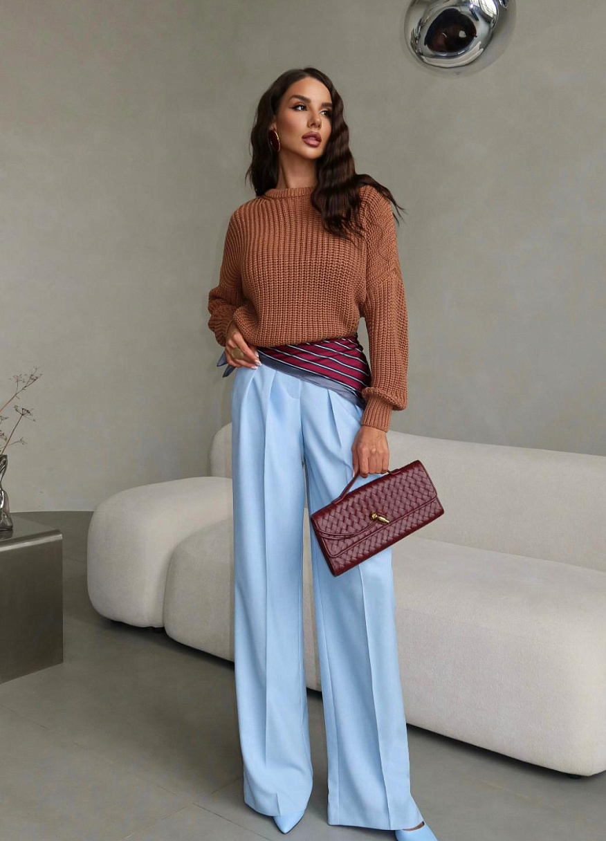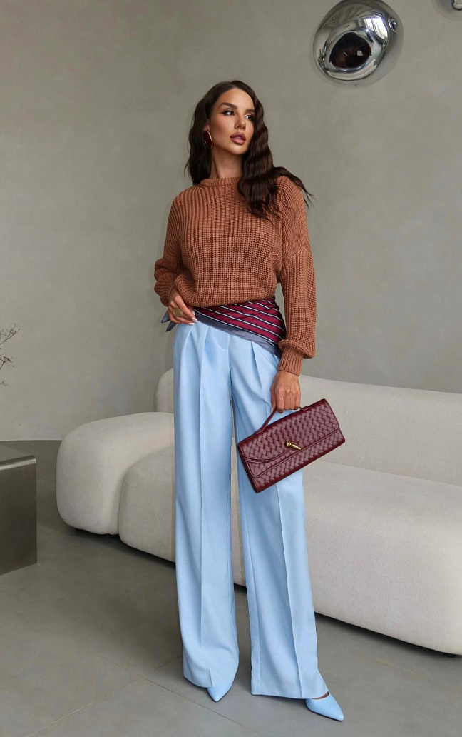 Универсальный силуэт свитера идеально сочетается как с классическими брюками, так и с. джинсами, юбками, шортами и легинсами, создавая образы, которые будут восхищать. Но главное — это внимание, которое вы привлечёте, надев его.