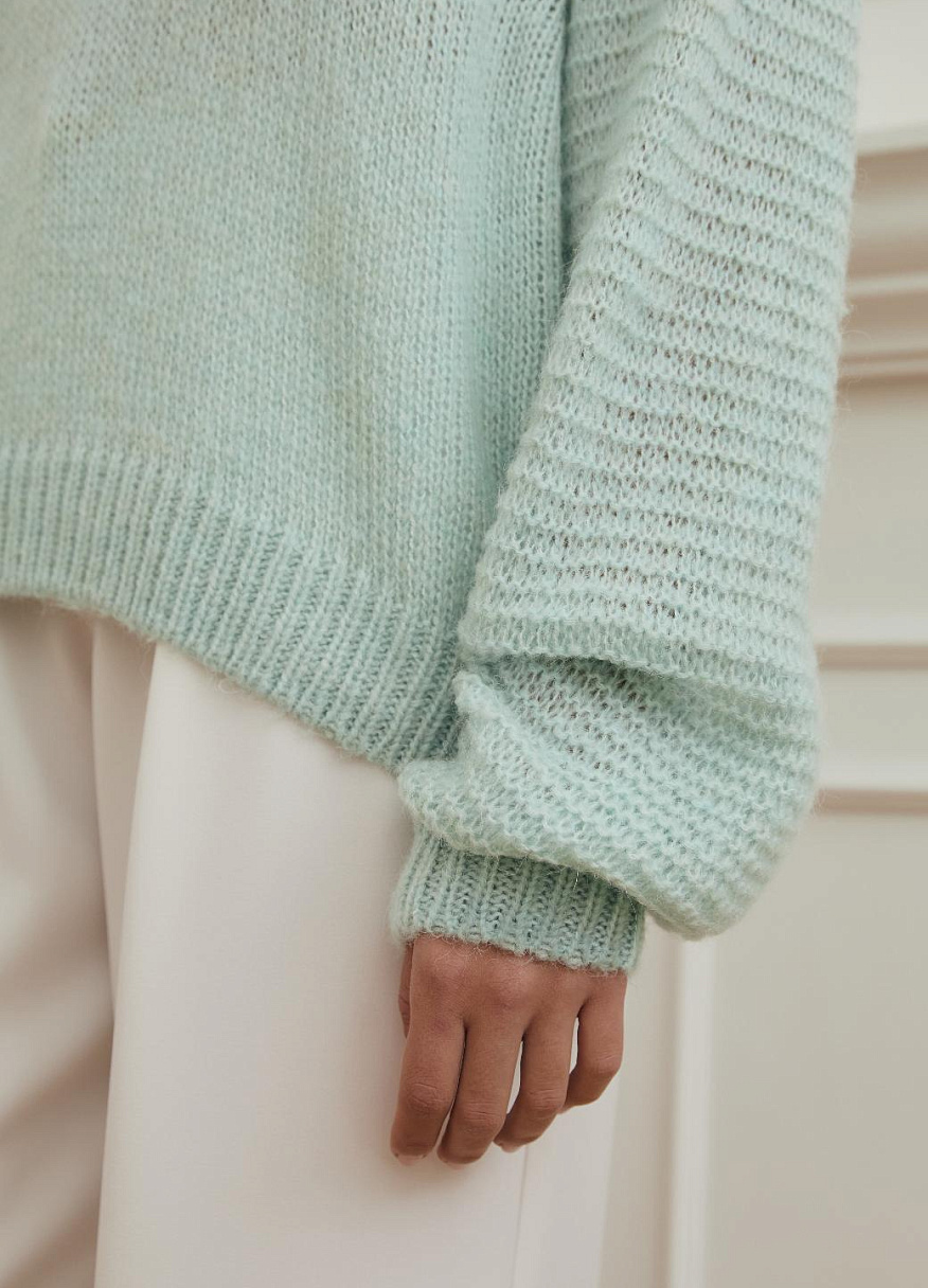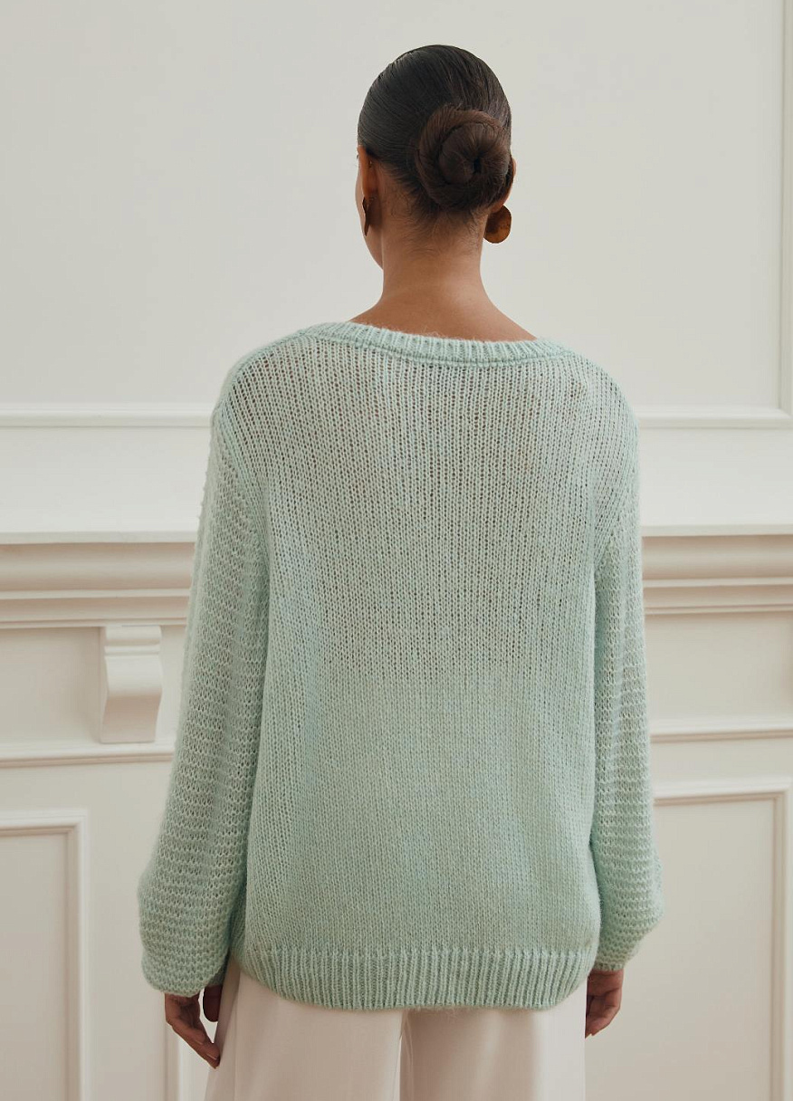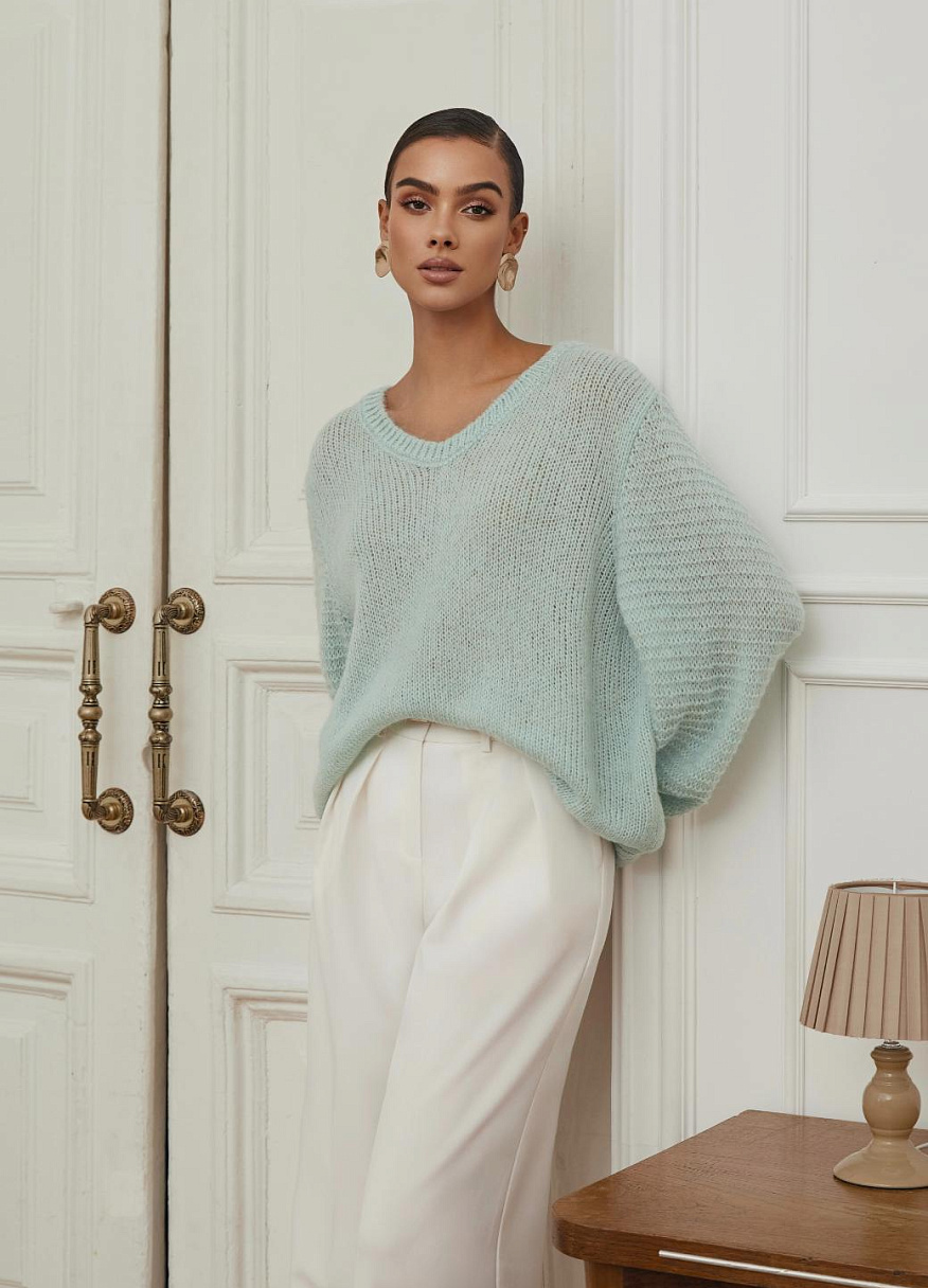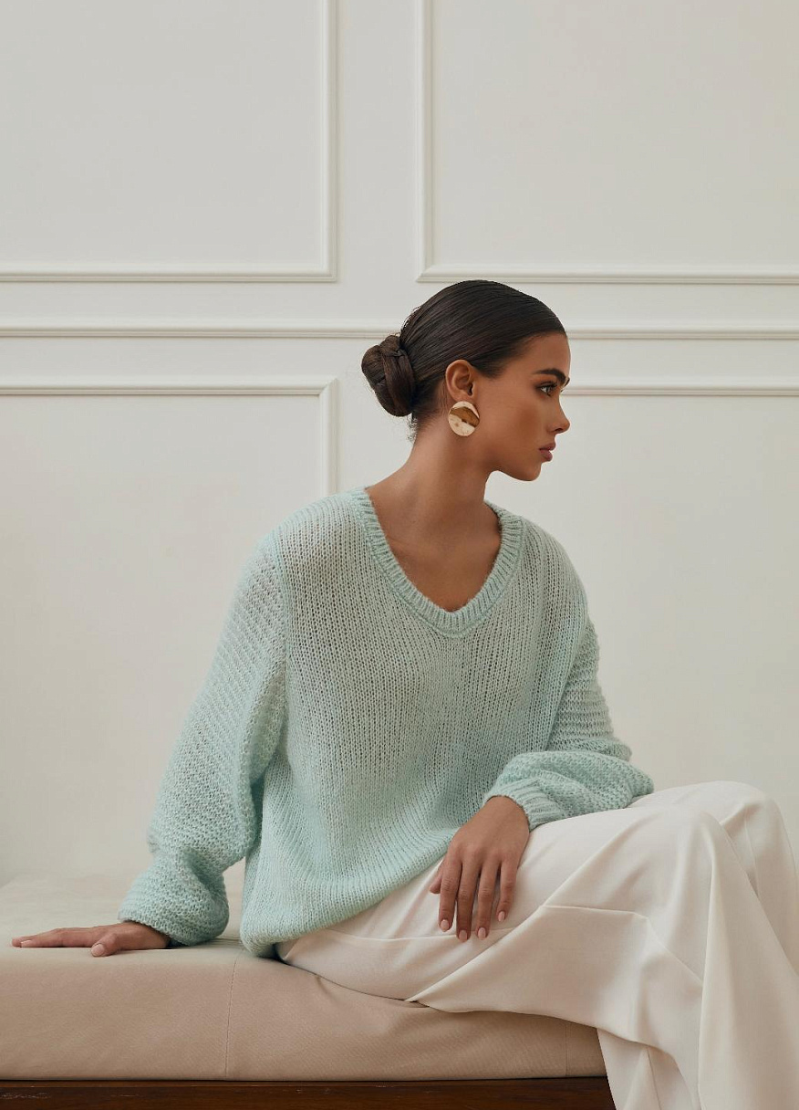 Объёмные рукава добавляют силуэту нежности и грации, а универсальный фасон позволяет легко сочетать «Базилик» с любым элементами гардероба. Этот свитер — идеальный баланс стиля, уюта и естественной элегантности, который ценится за свою простоту и изысканность одновременно.