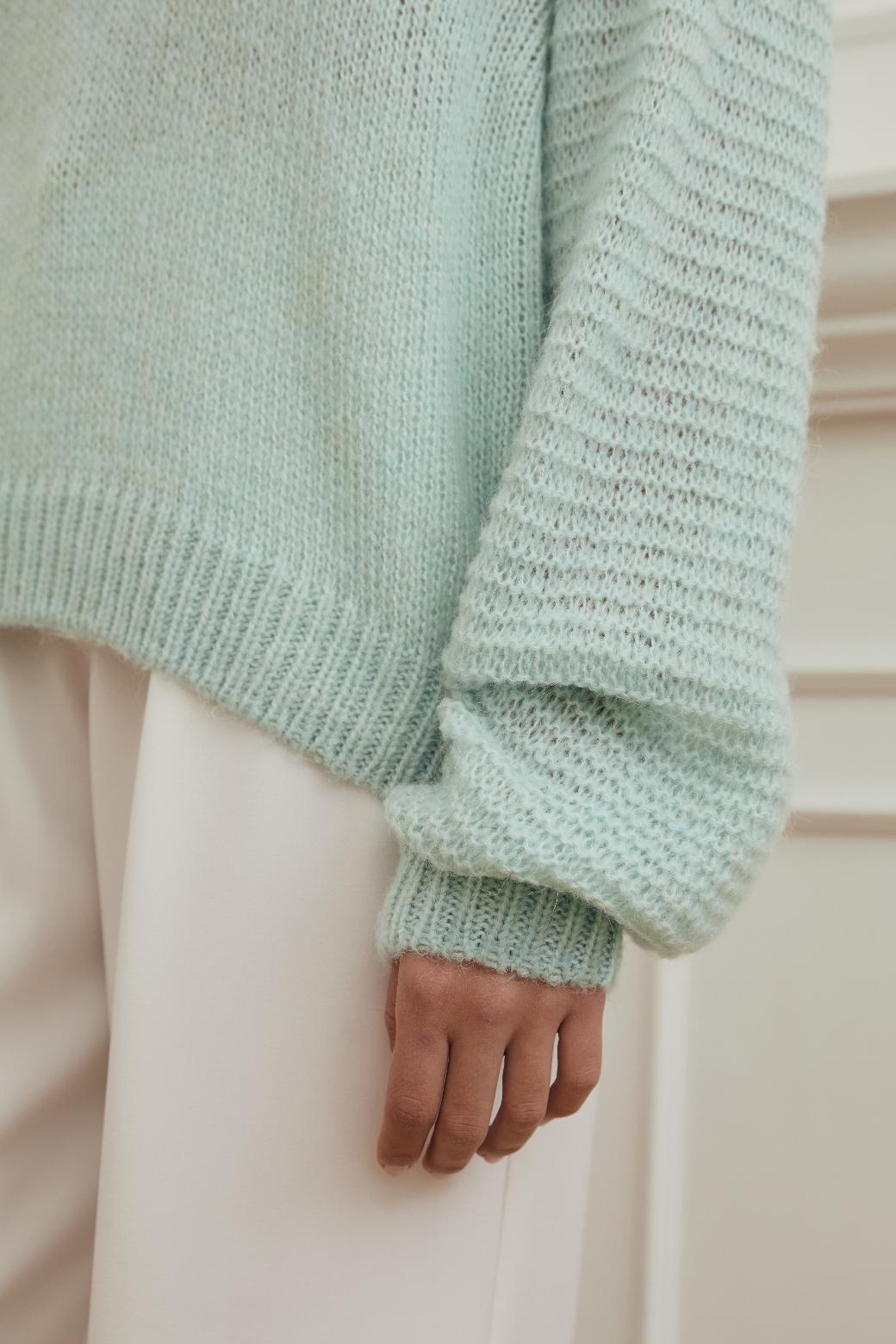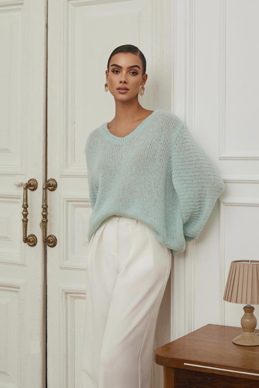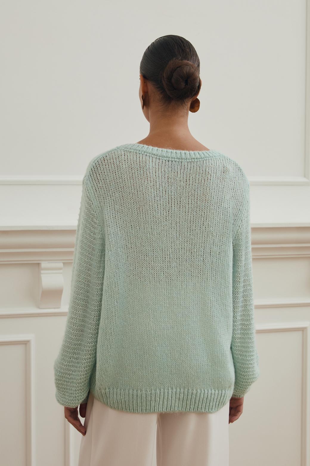Объёмные рукава добавляют силуэту нежности и грации, а универсальный фасон позволяет легко сочетать «Базилик» с любым элементами гардероба. Этот свитер — идеальный баланс стиля, уюта и естественной элегантности, который ценится за свою простоту и изысканность одновременно.