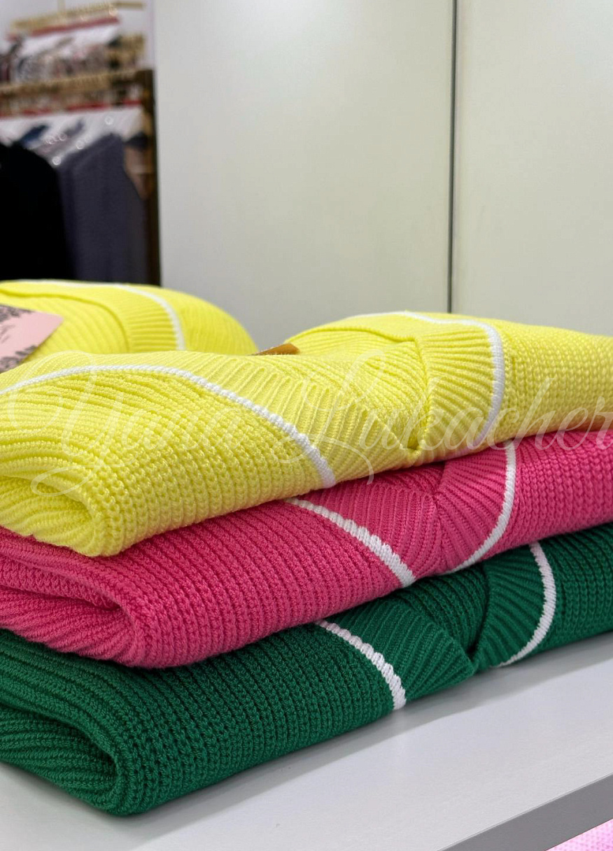Идеальный свитер «Феликс» позволит Вам выглядеть роскошно без особых усилий. Он выполнен из мягкой вискозной пряжи с приятной фактурой, дарящей ощущение комфорта. Изделие имеет свободный крой оверсайз, спущенную линию плеча и объемные рукава, что в тандеме добавляет образу расслабленного шика. Глубокий V-образный вырез дополнен контрастной узкой полоской, также перекликающейся на манжетах. А еще данную модель можно носить, приспустив на одно плечо. Такой свитер – беспроигрышный вариант для ультрамодных аутфитов на каждый день, сочетающих в себе баланс уюта и элегантности.