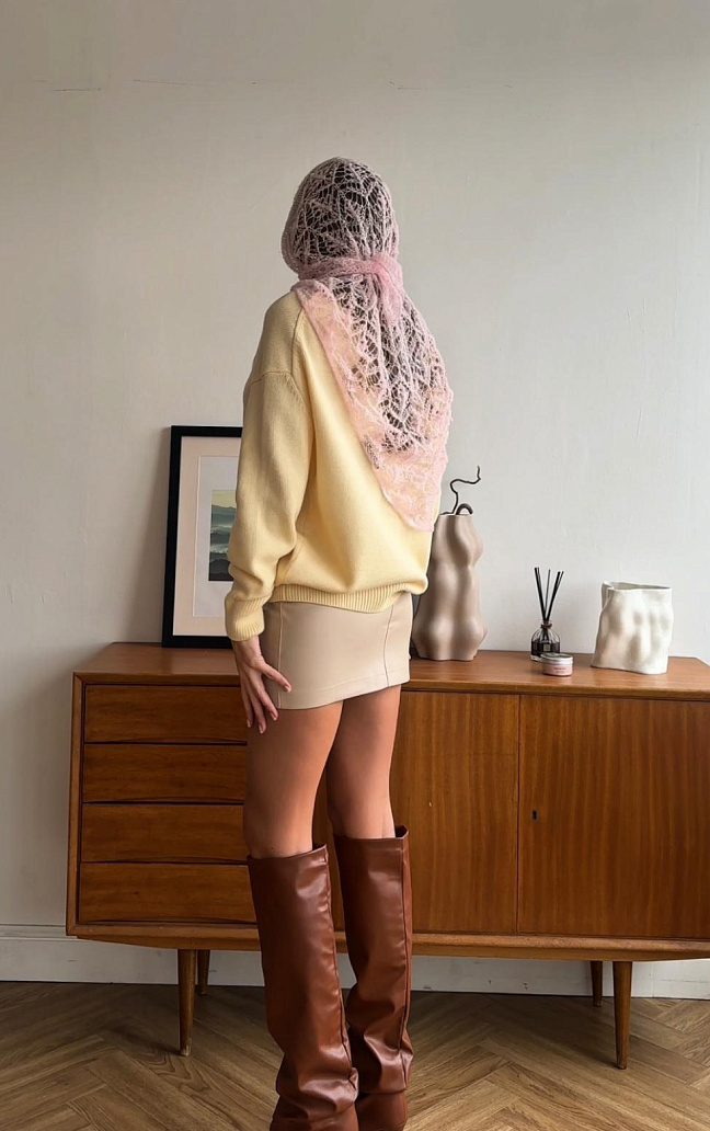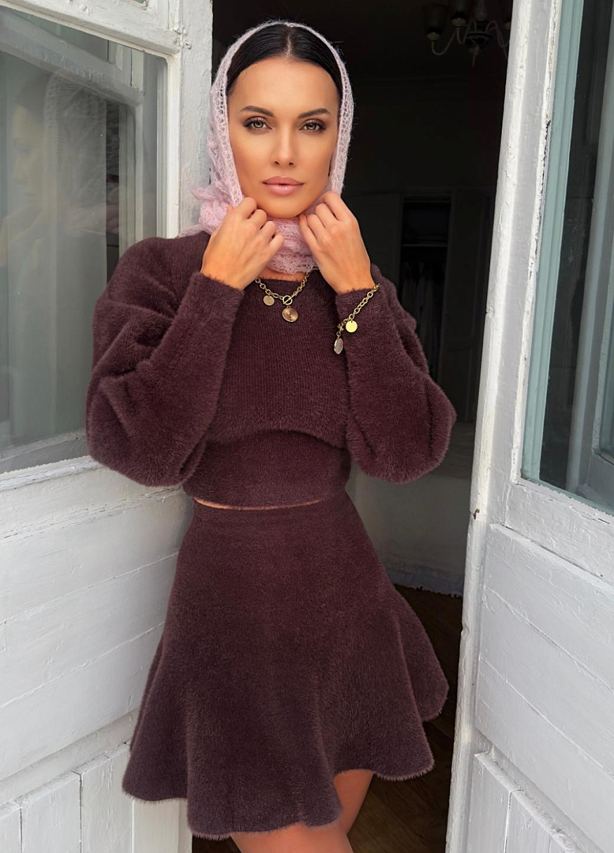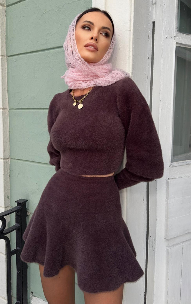 Идеален в паре с юбкой «Зои». Вместе они превращаются в идеальный союз соблазна и уюта, нежности и уверенности, дерзости и нежности.
