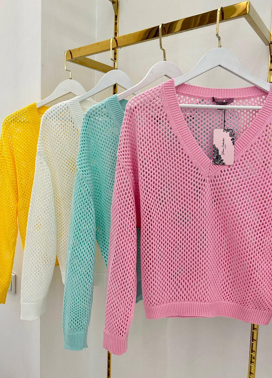 Представьте себе, что ваш стиль - это ваше собственное произведение искусства, а свитер "Портофино" - его яркая и вдохновляющая деталь. Это не просто одежда, это выражение вашей утонченности и вкуса. Вдохновленный трендовой воздушной сеткой свитер "Портофино" идеально сочетает в себе стиль и комфорт. Его V-образная горловина придаёт образу изысканности и нежности. Это настоящее воплощение элегантности и практичности. Созданный из невесомых материалов, он поддерживает оптимальный микроклимат, позволяя коже дышать и чувствовать себя комфортно в любой ситуации. Содержание хлопка делает его приятным на ощупь и дарит ощущение нежности при носке. Свитер "Портофино" согреет вас в прохладный вечер и станет ярким акцентом вашего образа. Носите его с брюками, джинсами, шортами или даже с платьями мини или макси - он идеально впишется в любой ваш наряд, придавая ему свой индивидуальный шарм.