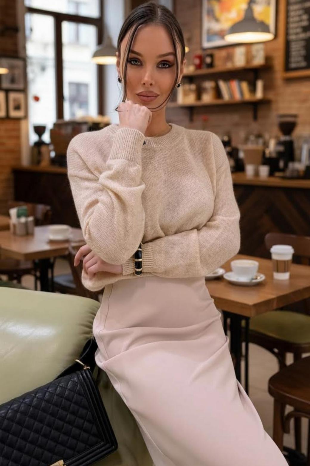 Встречать холодный сезон можно красиво и с комфортом, ведь в этом свитере ощущаешь себя словно укутавшимся в теплое одеяло. Остается приготовить ароматное какао и взять кусочек любимого пирога.