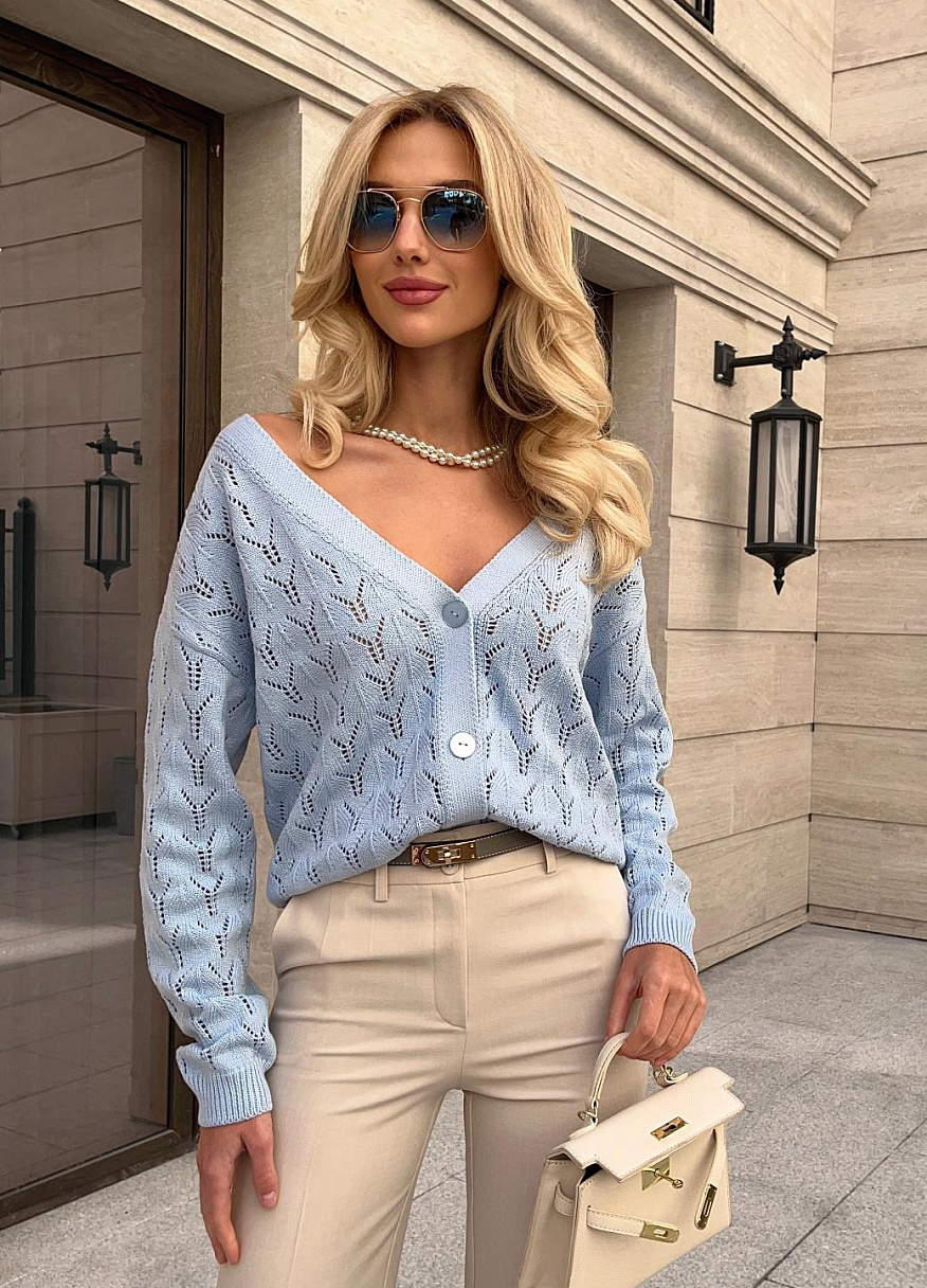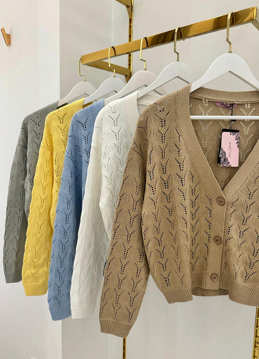 Этот кардиган легко адаптируется под любой стиль и настроение. Носите его с каблуками и лёгким платьем для создания романтичного образа или сочетайте с кедами и шортами для непринуждённого кэжуал стиля. "Парадиз" — это универсальность и элегантность в одном флаконе, искусно балансирующие между утонченностью и повседневностью.