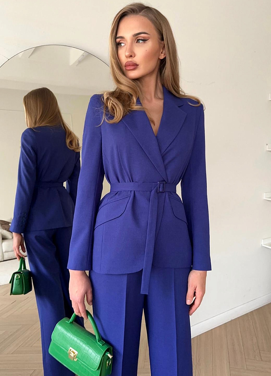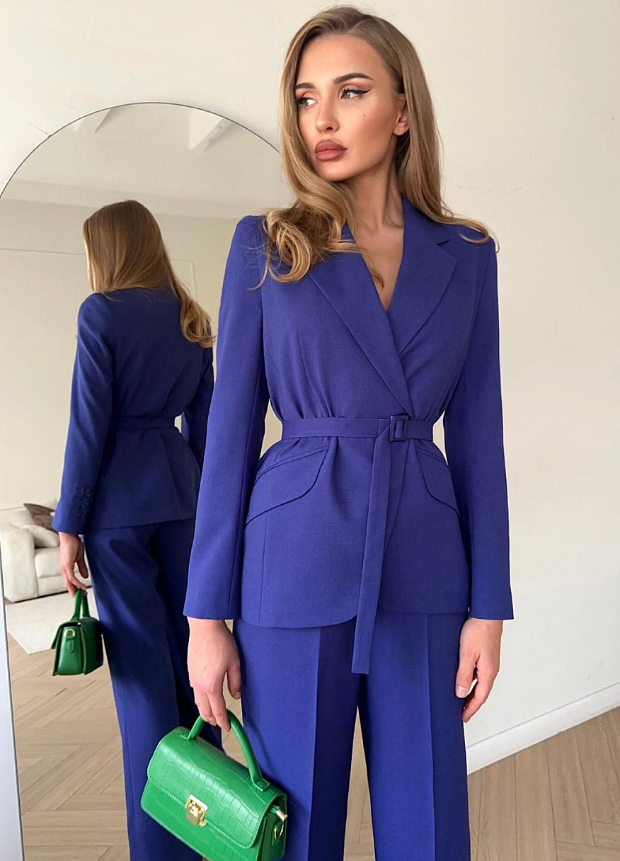 "Элеганте" - это не просто костюм, это воплощение роскоши и утонченности. Двубортный жакет  с элегантным поясом подарит вам ощущение статусности. Пиджак дополнен изысканными деталями, придающими образу дополнительную роскошь.