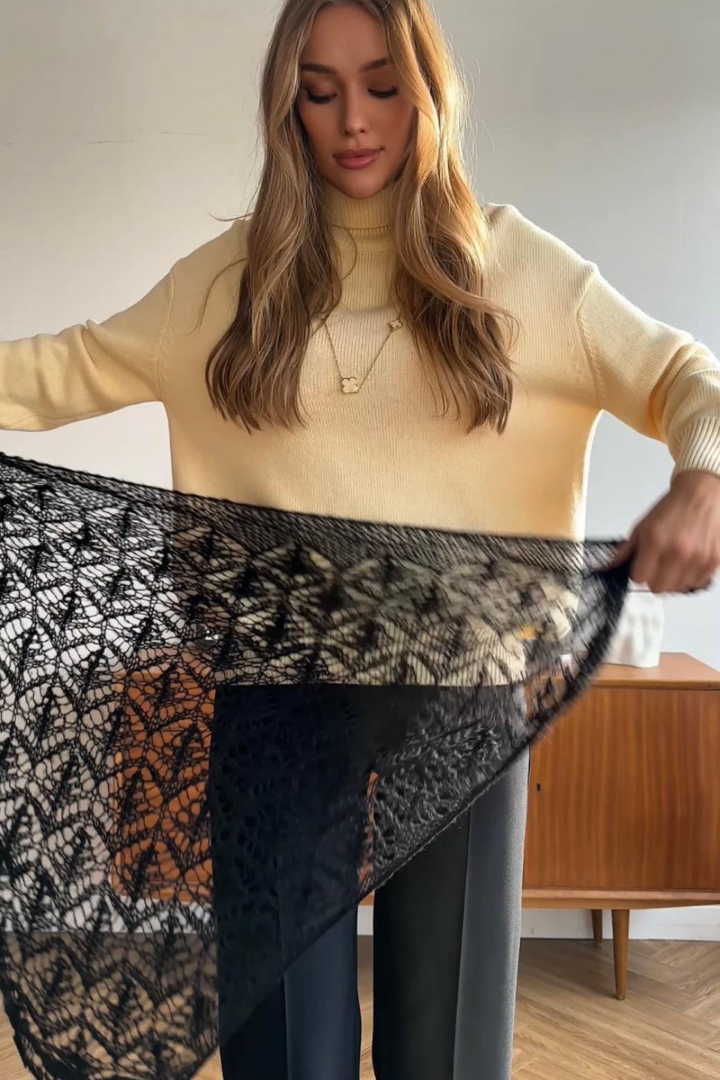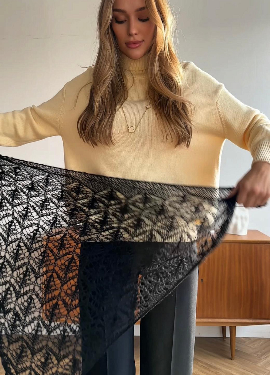 Ажурная косынка «Агния» идеально вписывается в гардероб современной девушки: носите её как косынку, чтобы добавить романтичности и лёгкости, или как стильную шаль для вечерних выходов. Она создаёт особое настроение, добавляя утончённости, гармонии и легкости каждому вашему наряду.