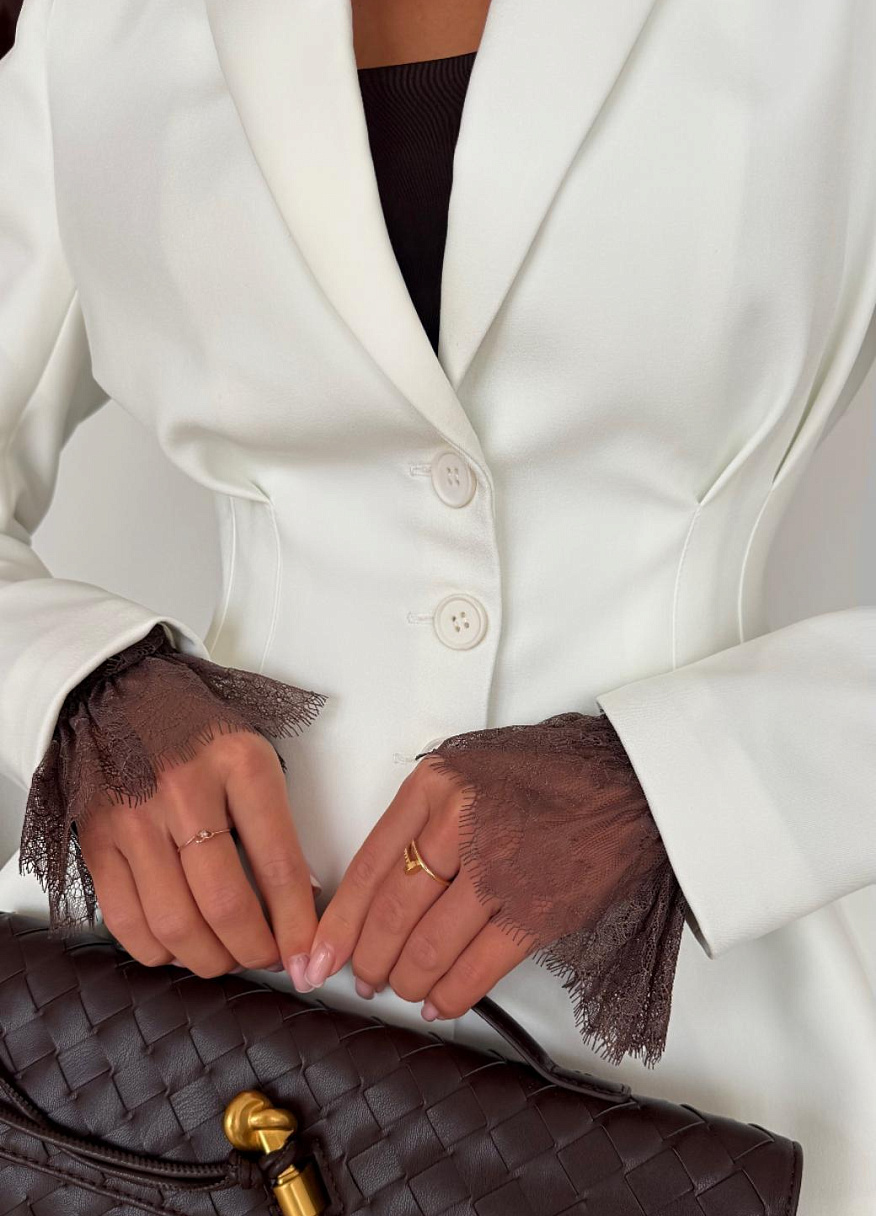 Лёгкие, воздушные кружевные манжеты на резинке надеваются прямо на запястье и легко интегрируются в любой гардероб. Наденьте их под свитер, под жакет, под рубашку или платье — и из-под рукава появится изящная кружевная линия, будто она изначально была частью изделия. Манжеты мягко обрамляют край рукава, создавая эффект сложного дизайнерского образа.