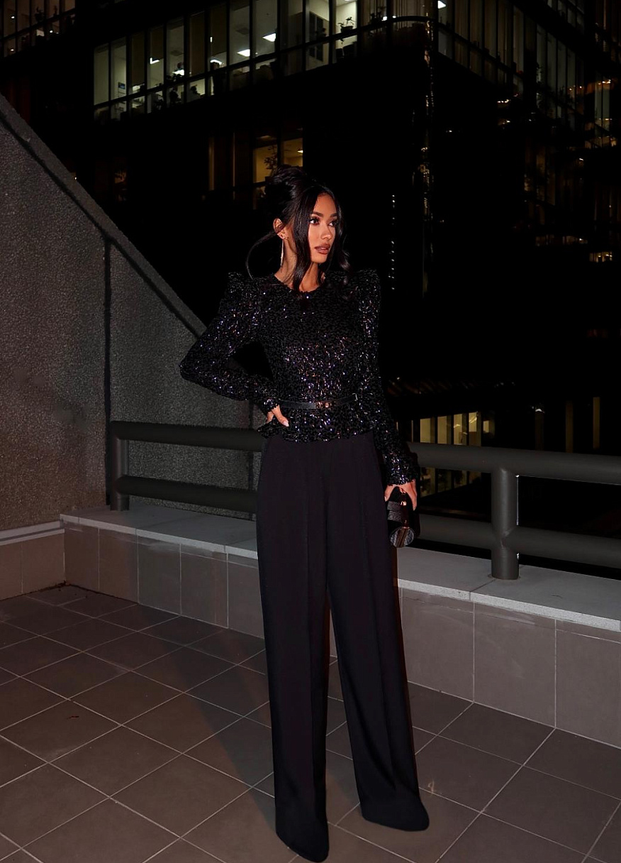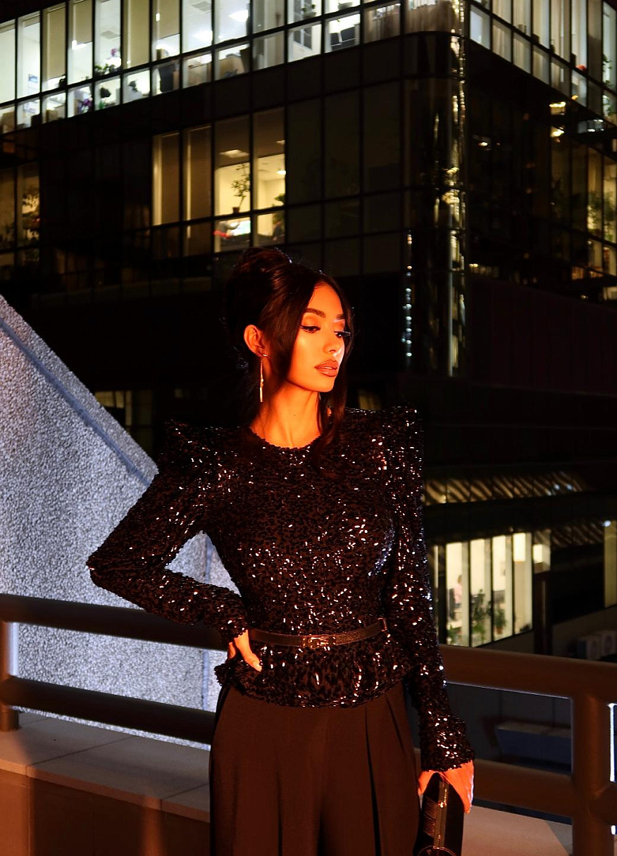«Айс» сочетается практически со всем: с юбкой «Беби» в комплекте, с брюками, лосинами, мини или макси-юбками, с пайетками и гладкими тканями. Это идеальная блестящая блузка, которая сделает вас звездой любого вечера