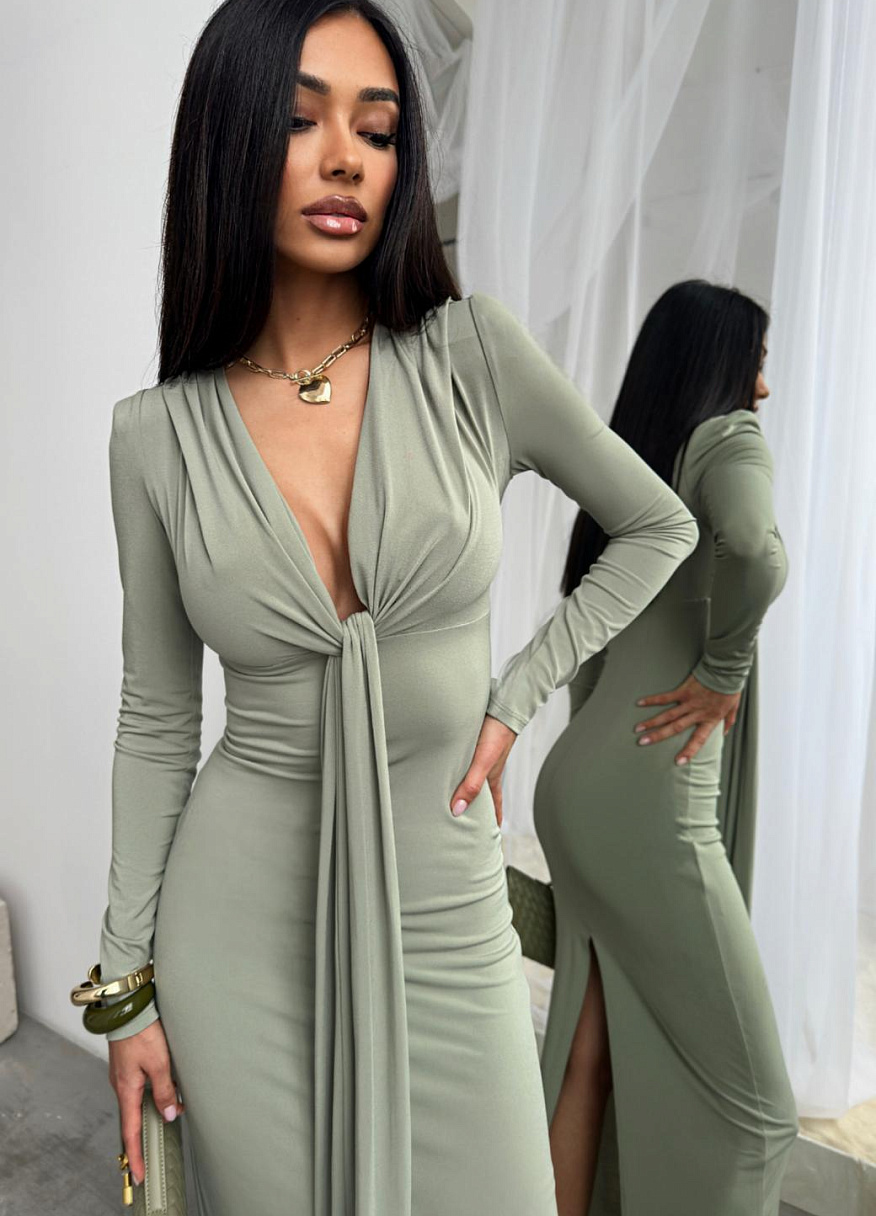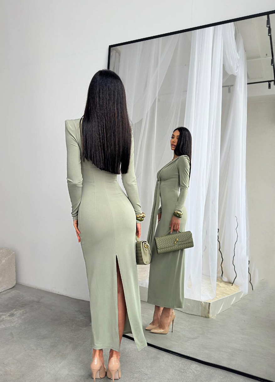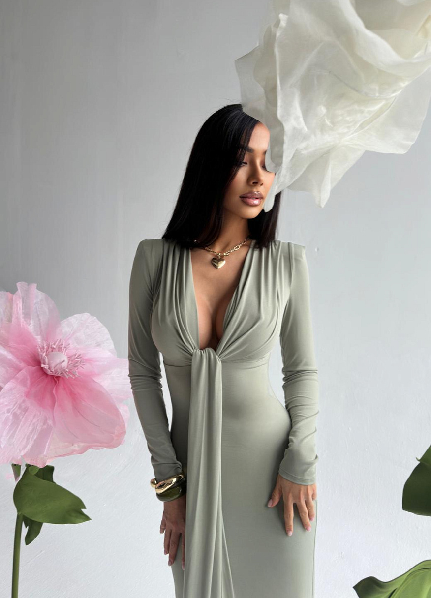 Платье "Анора" оливковое — дизайнерская женская одежда от Яны Лукачер | Российское производство
