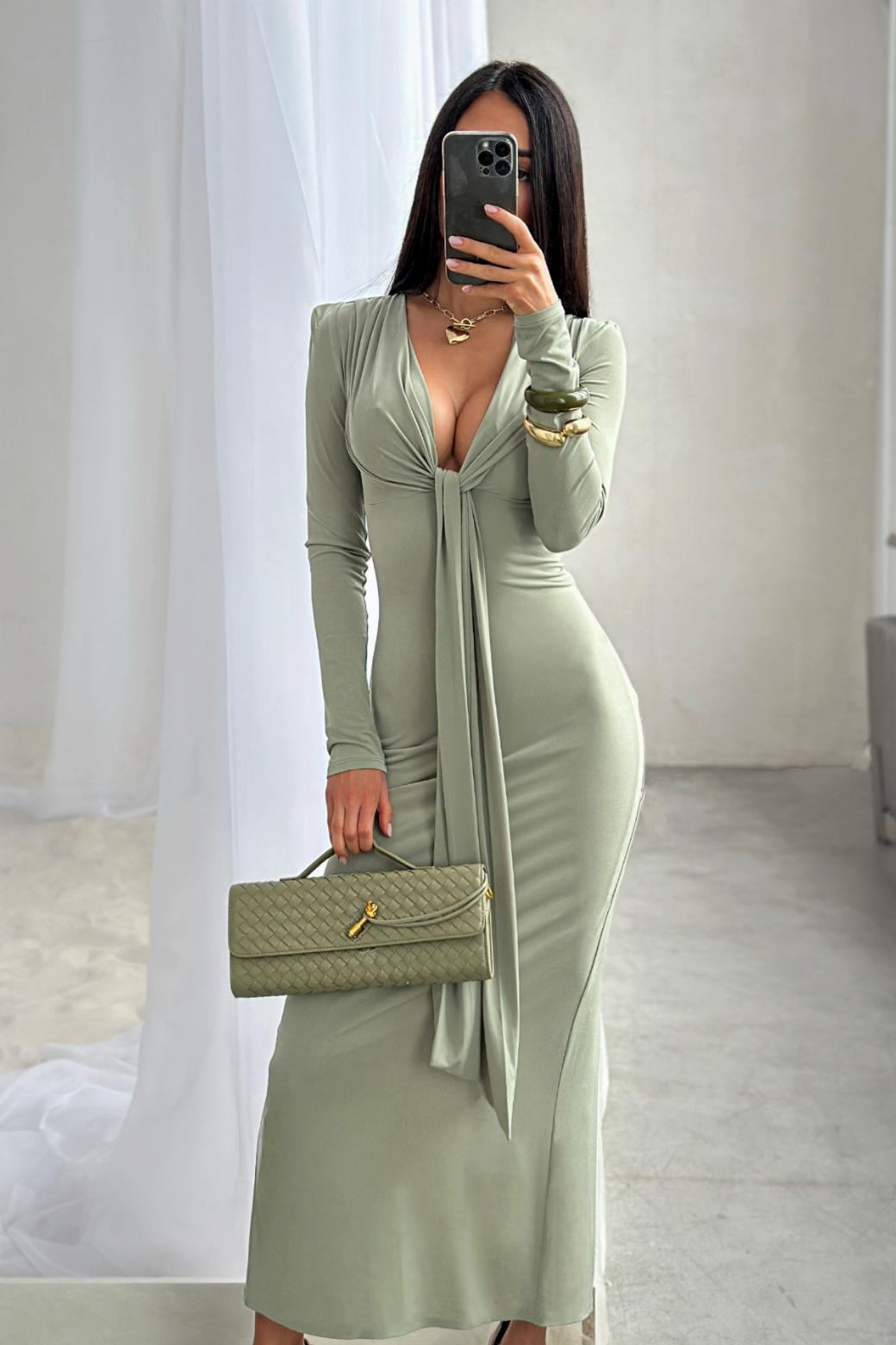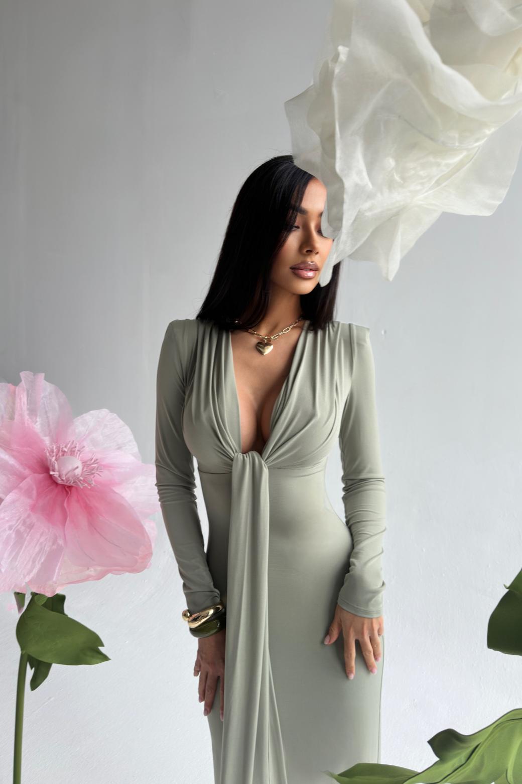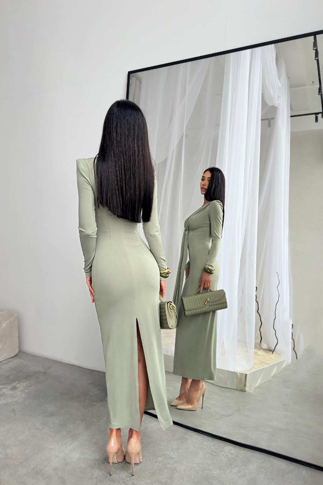 Платье "Анора" оливковое — дизайнерская женская одежда от Яны Лукачер | Российское производство