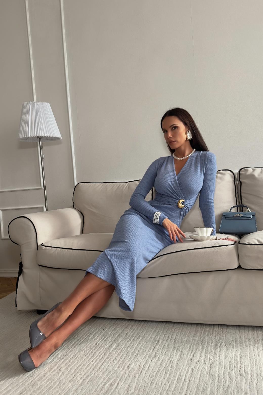 Платье "Арно" голубое — дизайнерская женская одежда от Яны Лукачер | Российское производство