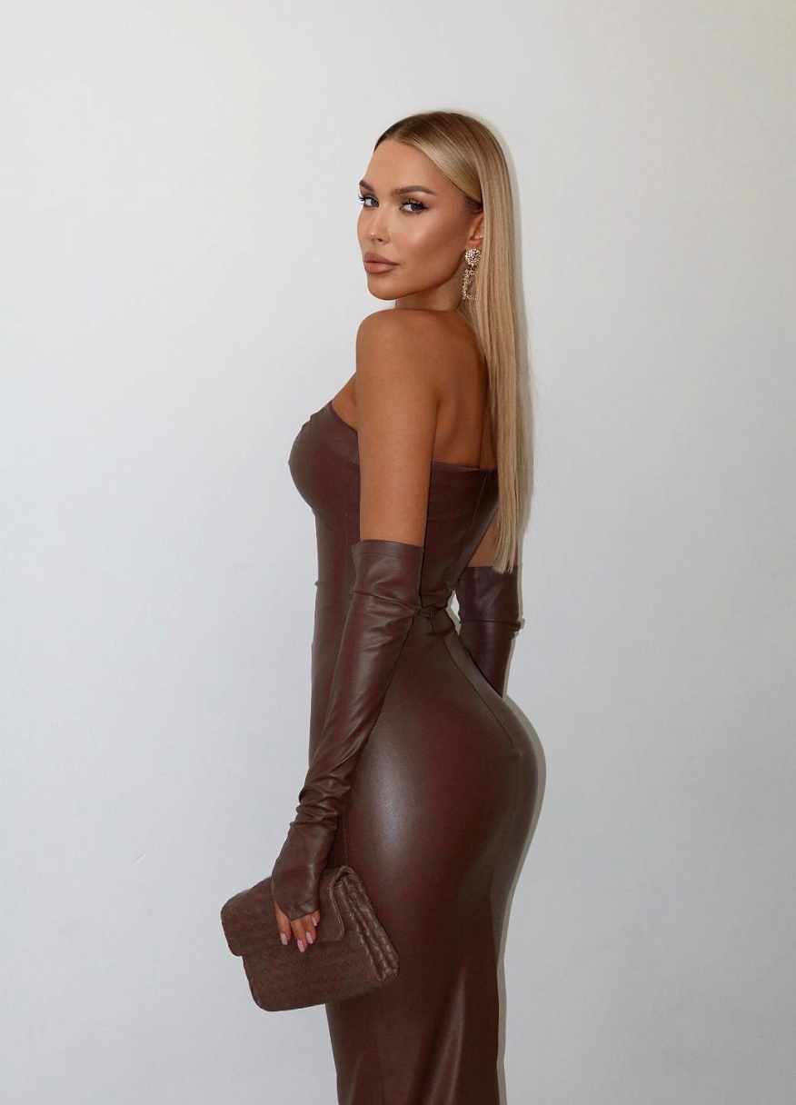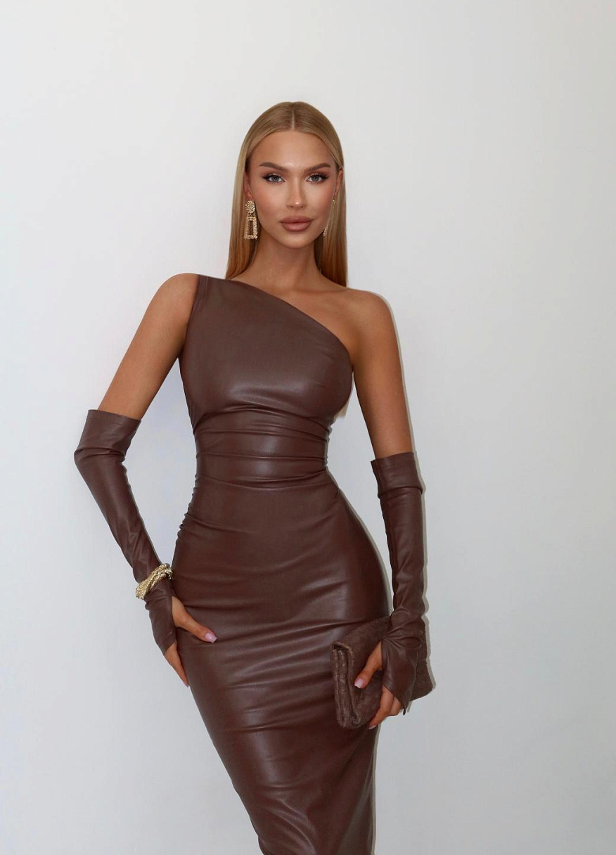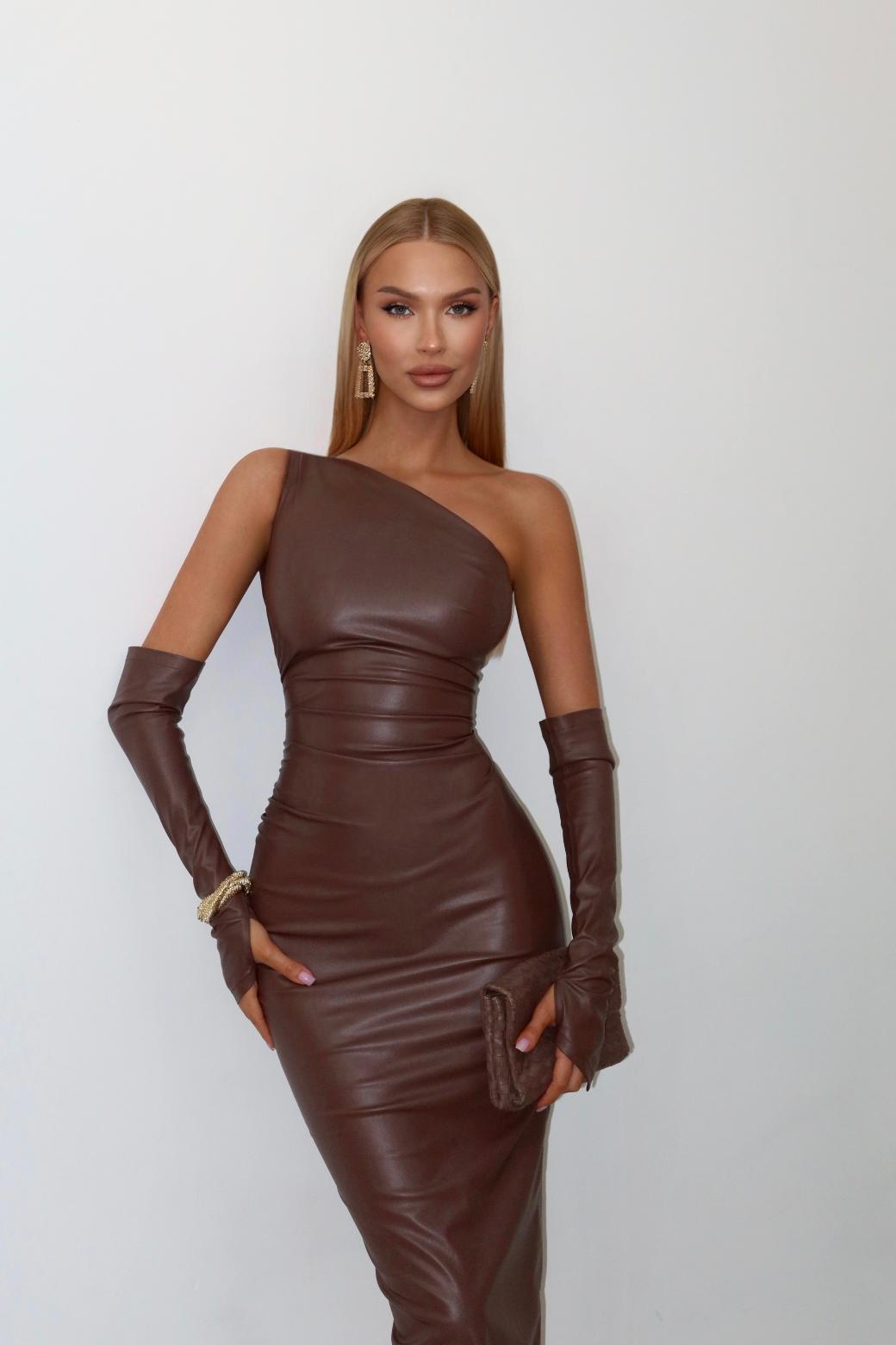 Платье "Черри" коричневое — дизайнерская женская одежда от Яны Лукачер | Российское производство