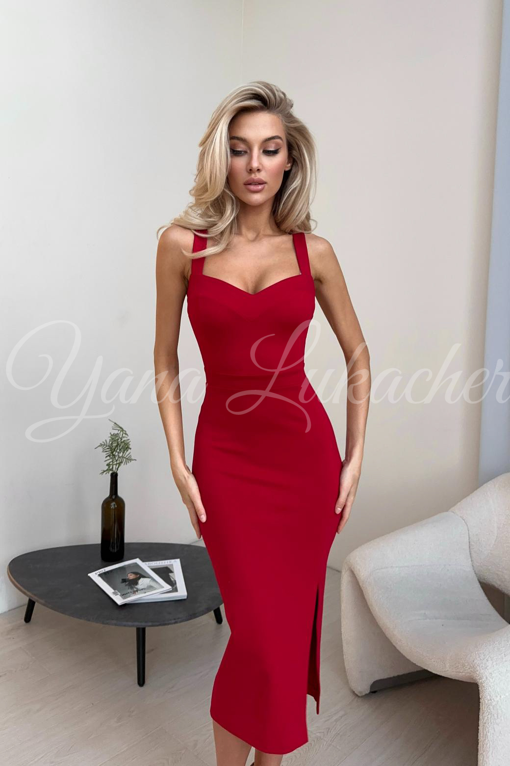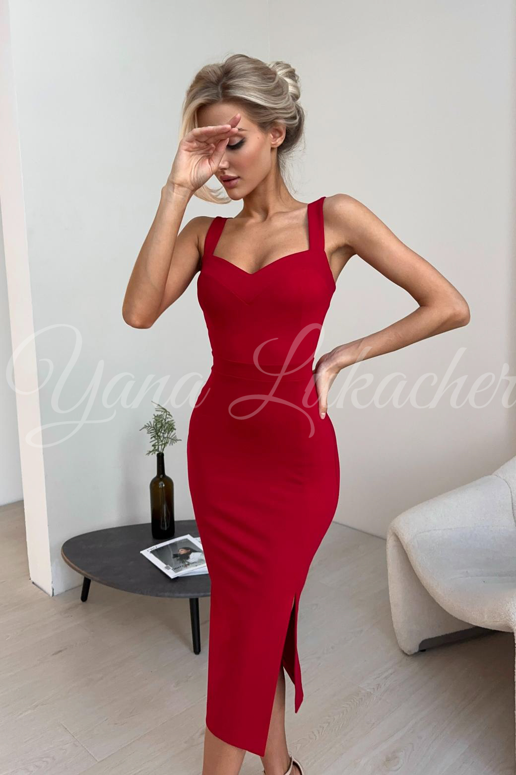 Обворожительное платье «Фернанда» длины миди и застежкой молнией по спинке. Это особое сочетание лаконичной строгости и женственности. Платье-футляр стало современной классикой. Благодаря сложному крою, оно эффектно «обволакивает» женские изгибы. Эластичный трикотаж утяжка прекрасно держит форму и не сковывает движения. Декольте в форме сердца зрительно вытягивает шею и акцентирует ключицы. Разрез по ножке подчеркнет достоинства фигуры и добавит легкой сексуальности.