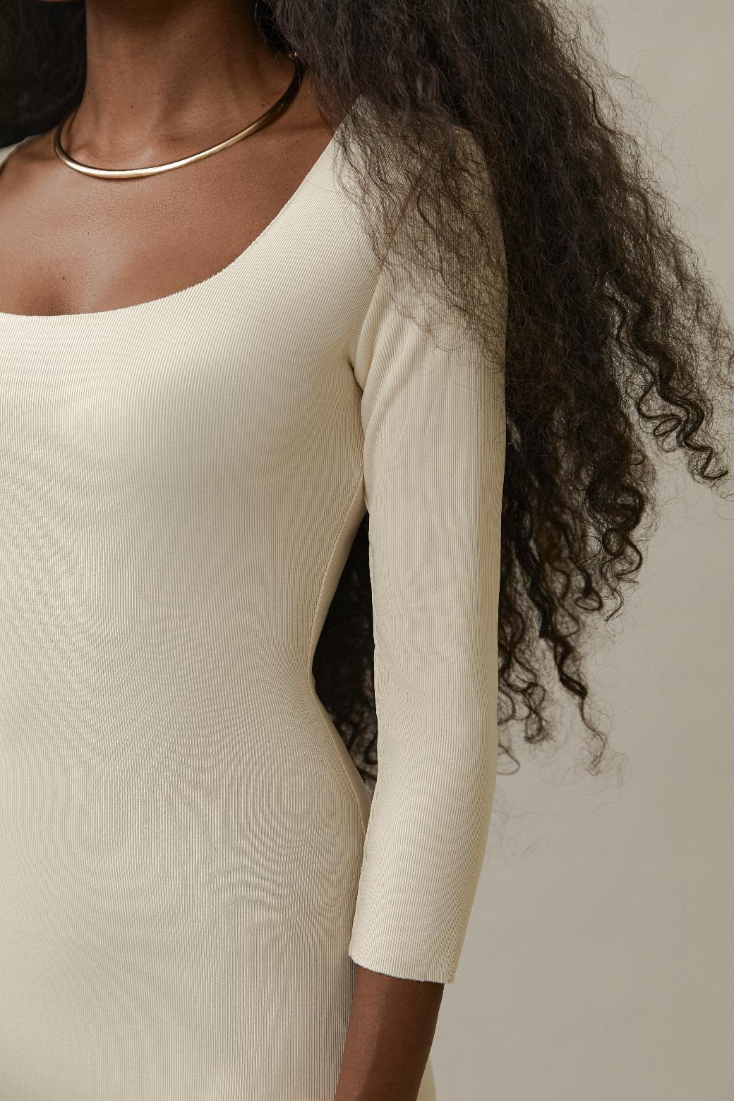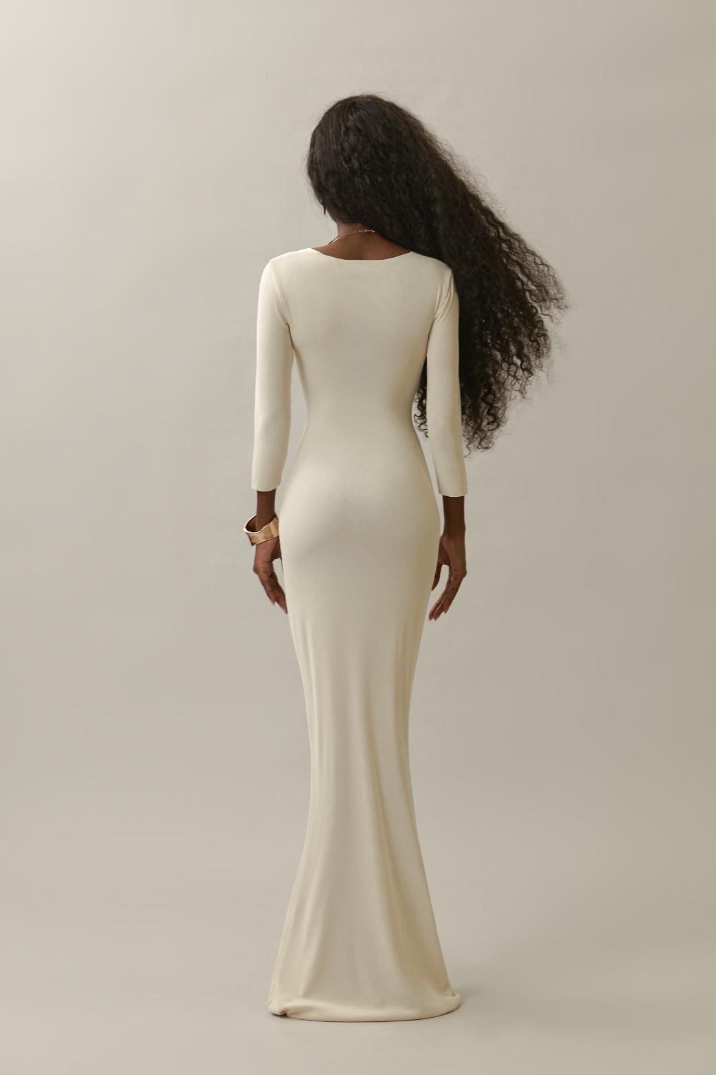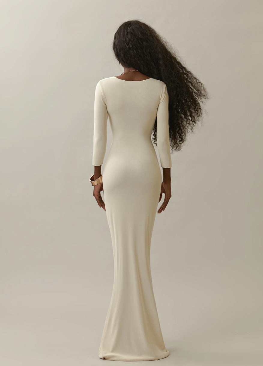 Элегантный вырез и рукава 3/4, подчеркнутые оригинальностью, делают модель ещё более утончённой и женственной. Но главное — это возможность изменить длину платья под ваш рост и обувь, придавая образу невероятную гибкость и индивидуальность. Вы — художник своего стиля, а это платье — холст для самых смелых экспериментов.