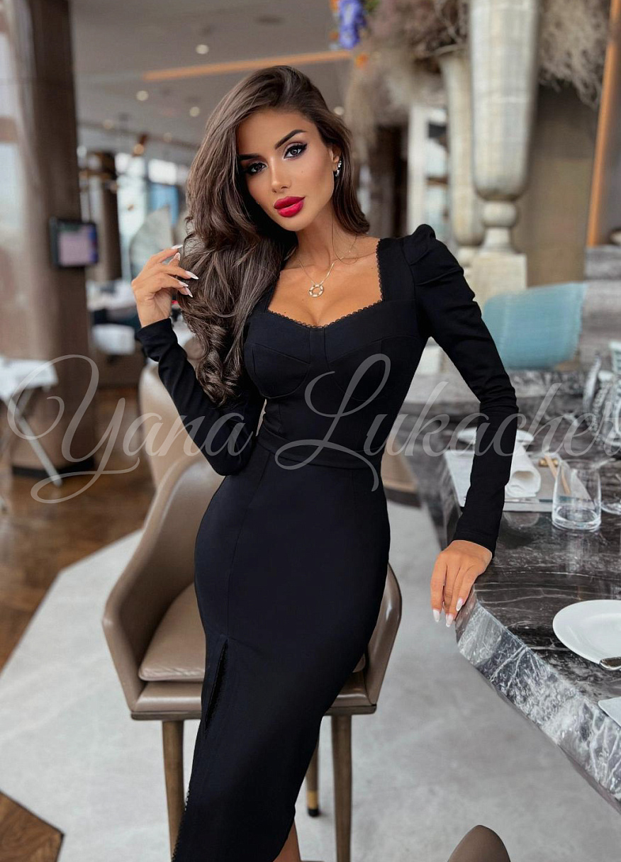 Такое соблазнительное и элегантное платье «Капелла» станет Вашим секретным «оружием» обольщения, притягивающим к себе взгляды и внимание. Плотный и невероятно мягкий трикотаж джерси позволит Вам выглядеть сногсшибательно, при этом чувствуя себя потрясающе комфортно благодаря невесомости материала. Акцентные рукава с выразительными складками гармонично сочетаются с приталенным силуэтом изделия, очаровательно подчеркивающим фигуру. По спинке расположена потайная застежка-молния. Глубокий фигурный вырез и интригующий высокий разрез уравновешены сдержанной длиной миди, а также окантованы нежным эластичным кружевом, которое добавляет изящества всему образу.