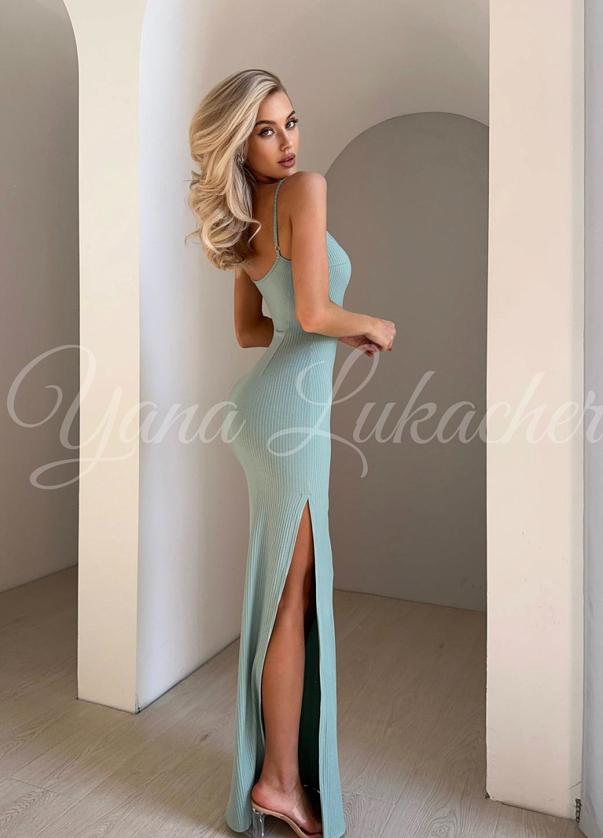 В чем формула безупречности изысканного платья «Хелена»? Все гениальное просто: лаконичный крой, трендовая длина и комфортный материал. Изделие выполнено из нежного, мягкого и эластичного трикотажного полотна, а текстура в вертикальную полоску очень выгодно подчеркивает женские формы. Соблазнительный прилегающий крой акцентирует внимание на красивых изгибах женского силуэта, а тонкие бретели позволяют продемонстрировать хрупкость плеч и изящество женского декольте. Открытый верх модели нивелируется макси длиной, которая уже завоевала звание одного из главных трендов. Юбку также дополняет высокий боковой разрез, который деликатно приоткрывает ноги и визуально добавляет роста.
