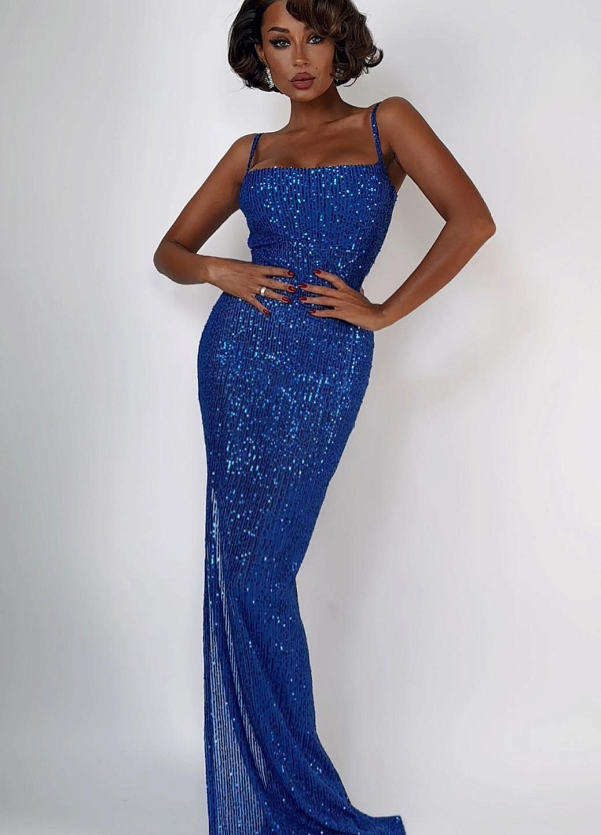 Шикарное платье «Люмери» из пайеток на тонких лямках - это роскошный наряд, который идеально подойдет для торжественного случая. Платье имеет волнующую линию груди и разрез по ножке, которые подчеркивают привлекаткльность и магнетизм  его обладательницы. Платье выполнено из блестящих пайеток, которые создают эффект мерцания. Вы будете настоящей королевой на любом мероприятии, где появитесь, в этом платье.