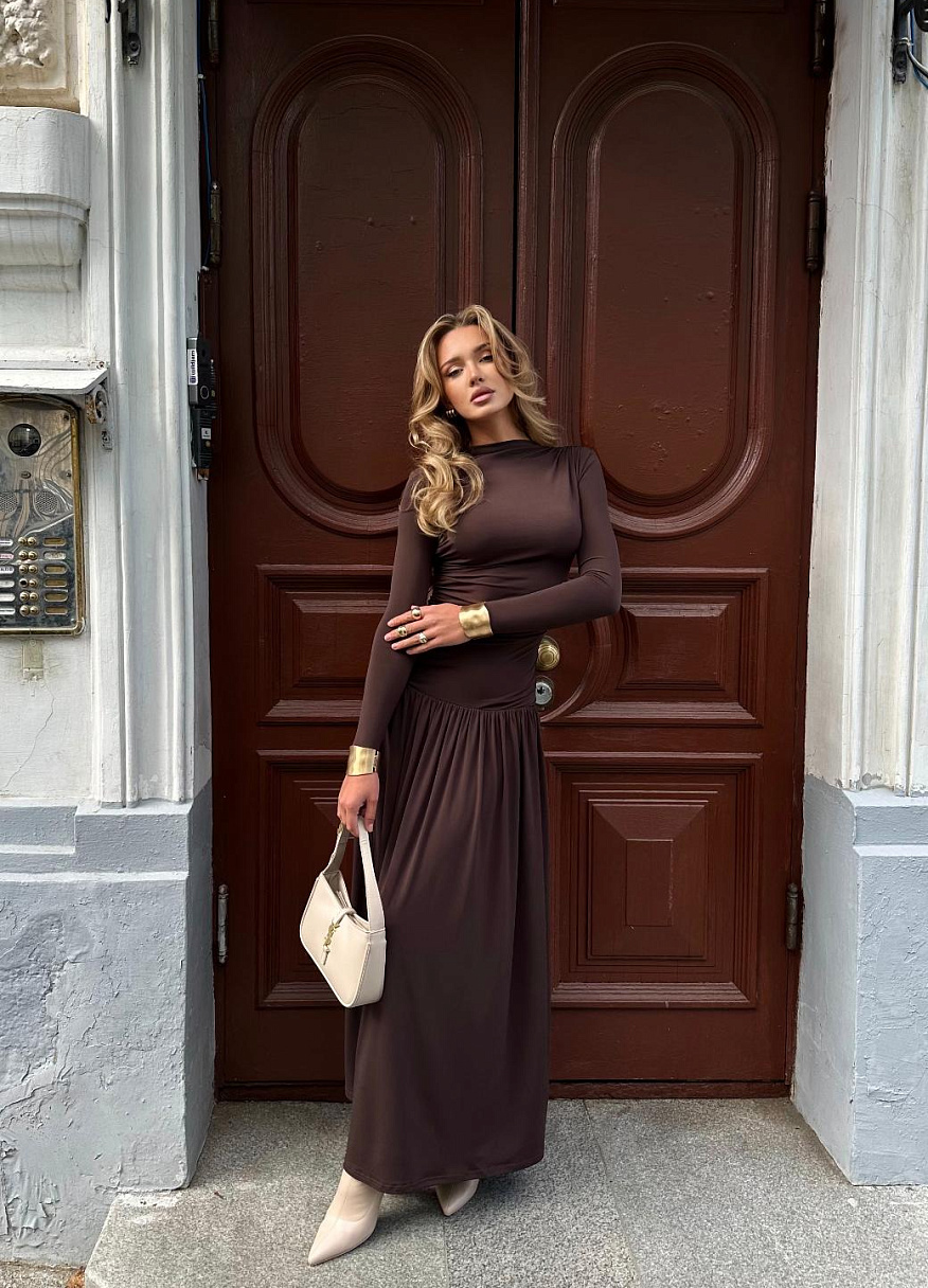 Платье "Мадейра" коричневое — дизайнерская женская одежда от Яны Лукачер | Российское производство