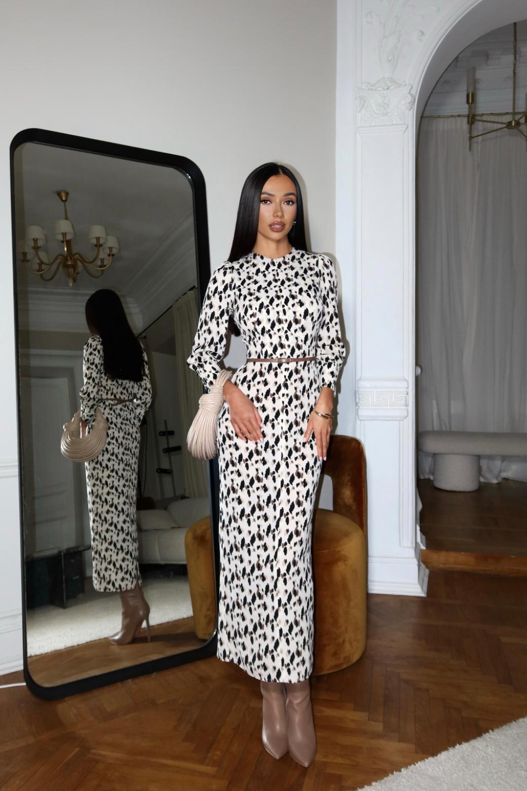 Шлица по юбке подчеркнёт вашу грацию. А рукава — отдельное произведение искусства. Легкая сборка по окату создаёт объём, а широкие манжеты с навесными петлями добавляют аристократичной утончённости.