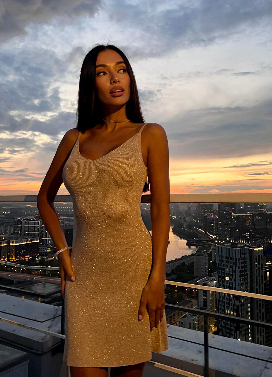 Мини-платье «Миля» с люрексом сияет, как звезды на ночном небе, отражая свет и создавая эффект чарующего мерцания. Этот эффект не просто привлекает внимание. Он завораживает, как самые дорогие бриллианты, рассыпанные по бархатному полотну.