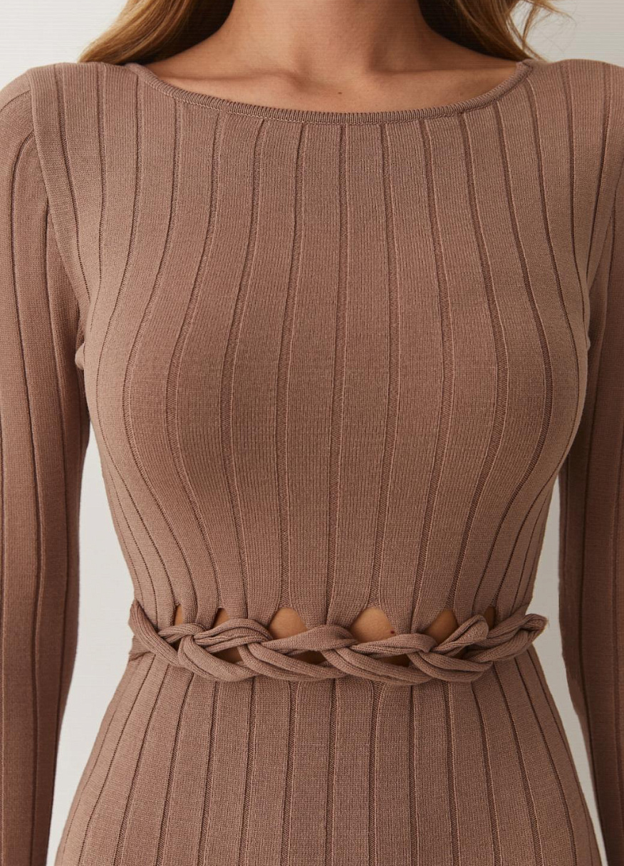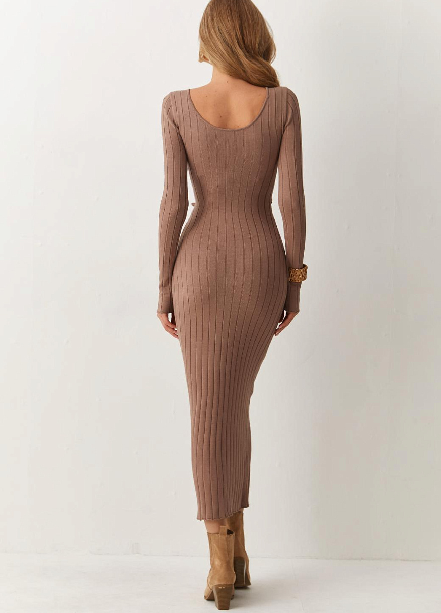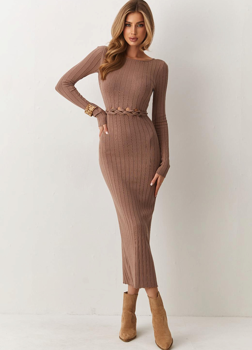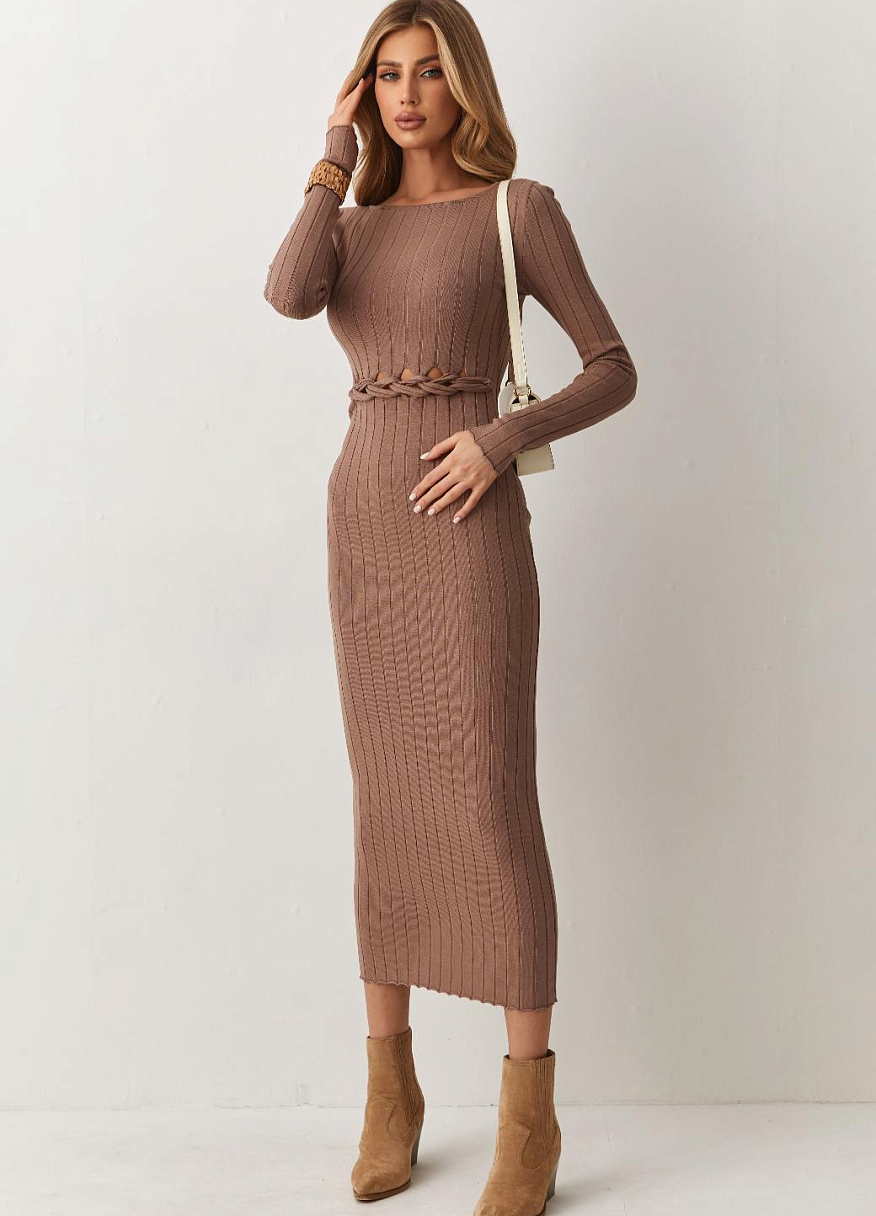 Эластичный вязаный трикотаж нежно обнимает тело, при этом даря максимальный комфорт и свободу движений. Длинна миди привносит в силуэт легкость и женственность, создавая идеальный баланс между строгим и нежным. Платье «Орнелла» раскроет вашу индивидуальность и стиль.