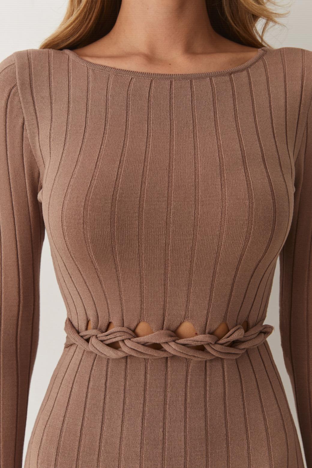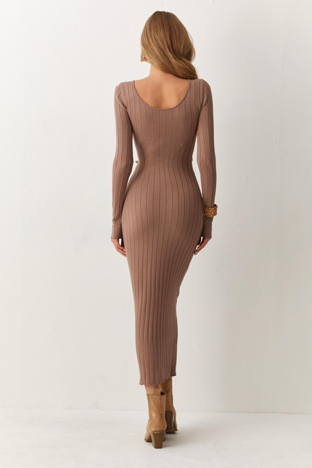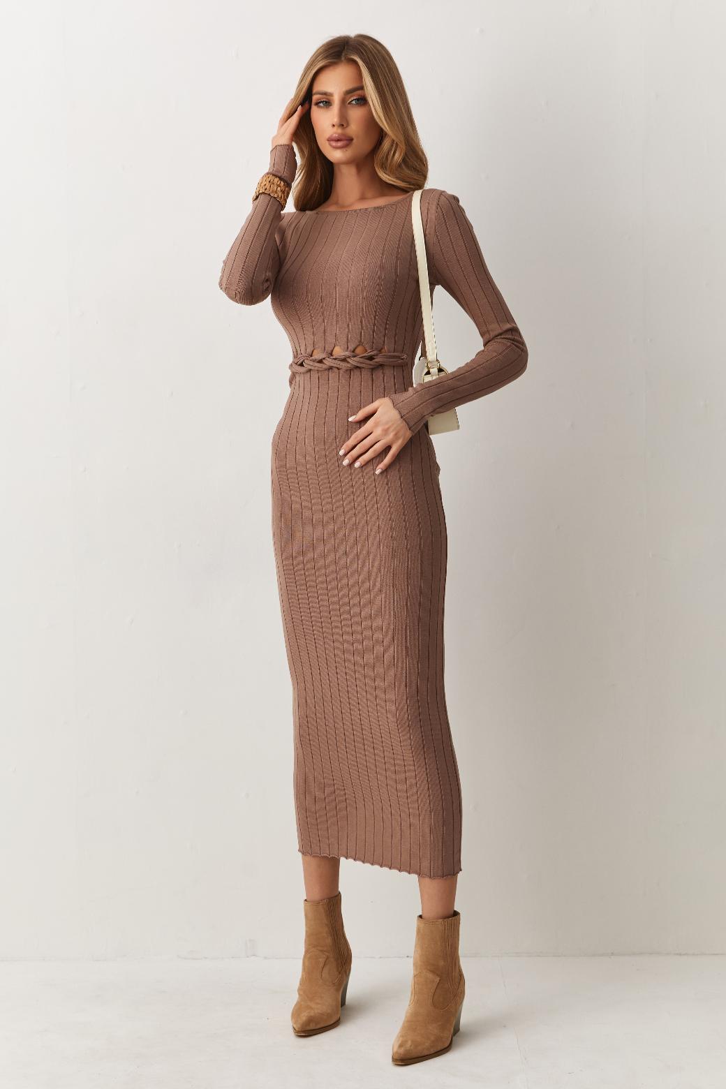 Эластичный вязаный трикотаж нежно обнимает тело, при этом даря максимальный комфорт и свободу движений. Длинна миди привносит в силуэт легкость и женственность, создавая идеальный баланс между строгим и нежным. Платье «Орнелла» раскроет вашу индивидуальность и стиль.