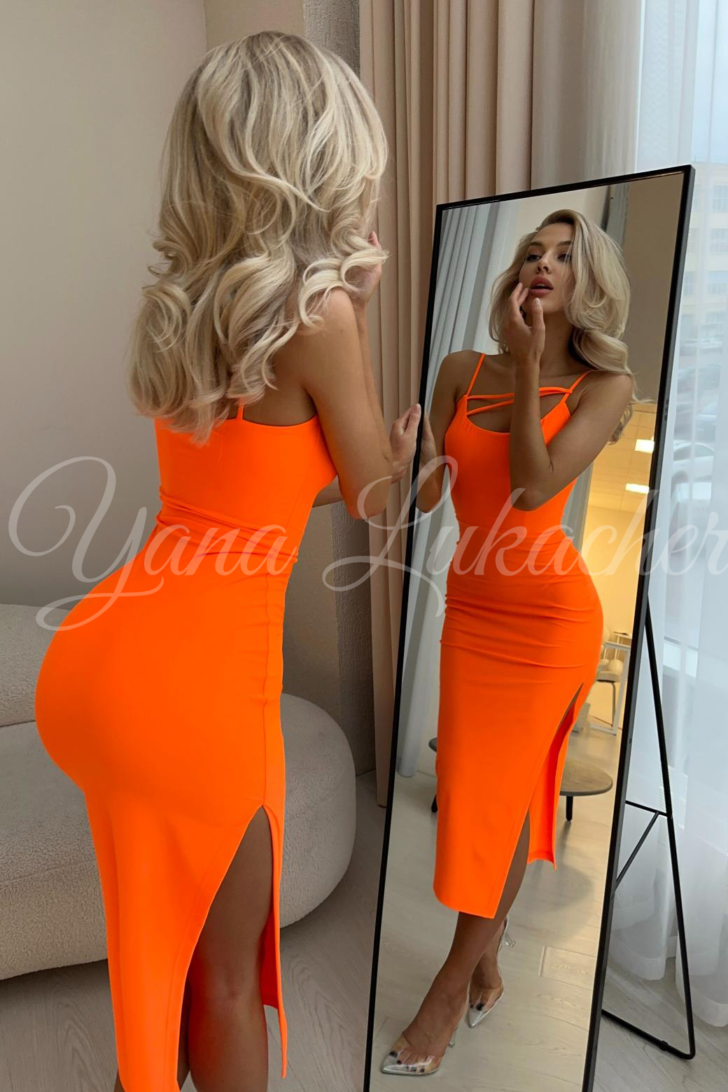Платье "Памела" оранжевое — дизайнерская женская одежда от Яны Лукачер | Российское производство