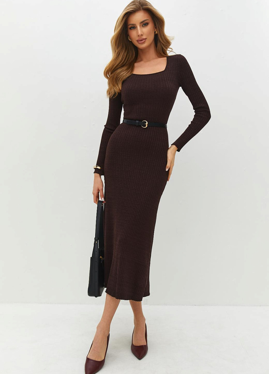 Вырез каре придаёт облику утончённость, красиво открывая линию ключиц и подчёркивая осанку. А миди-длина добавляет шарма и загадочности: достаточно закрыто, чтобы выглядеть элегантно, но достаточно соблазнительно, чтобы приковывать взгляды.