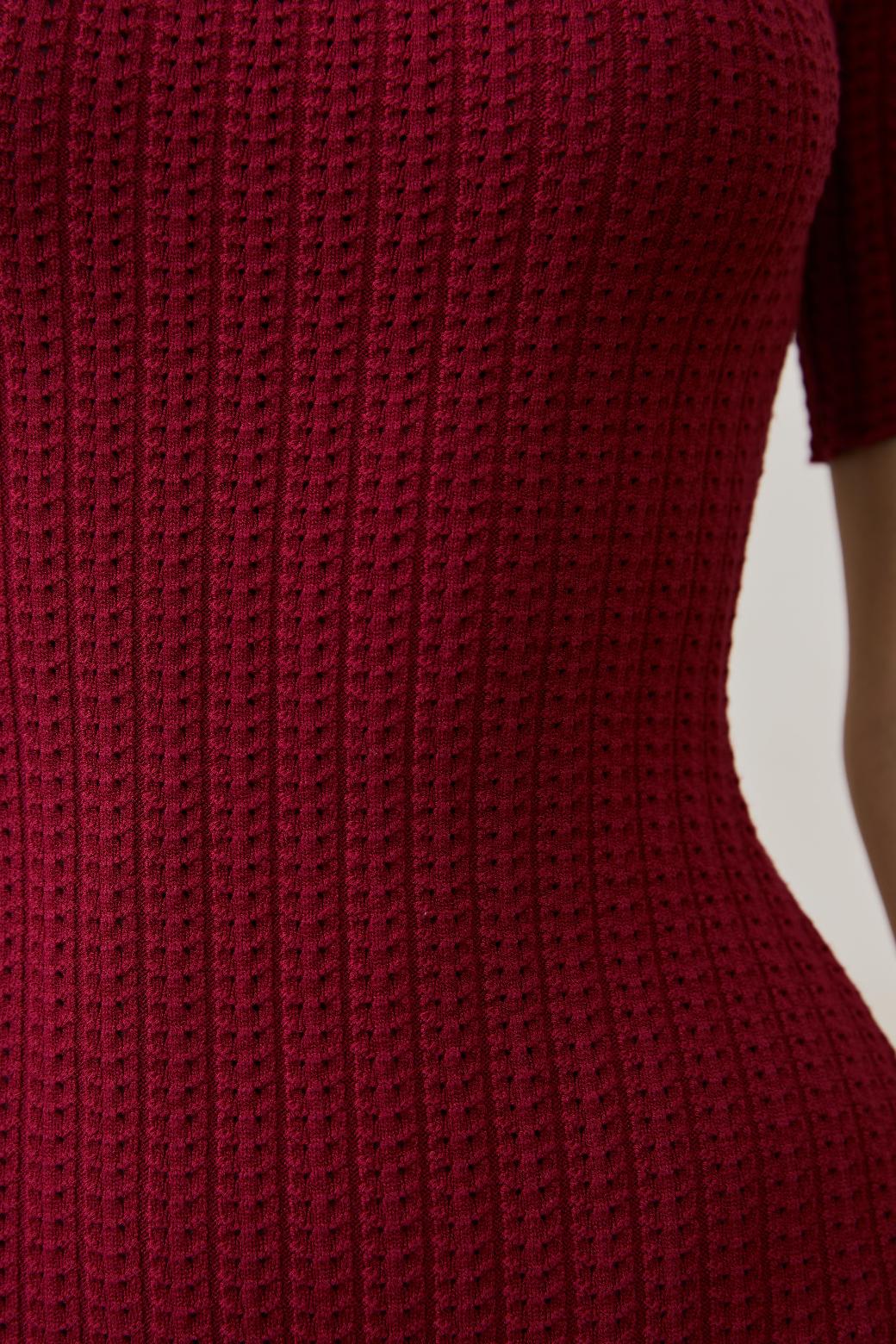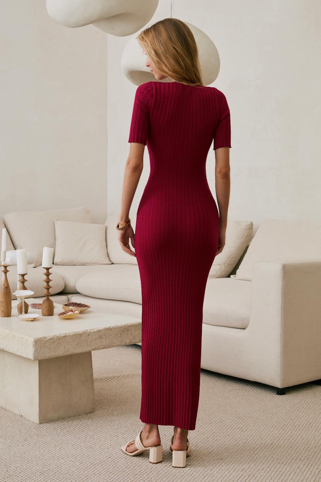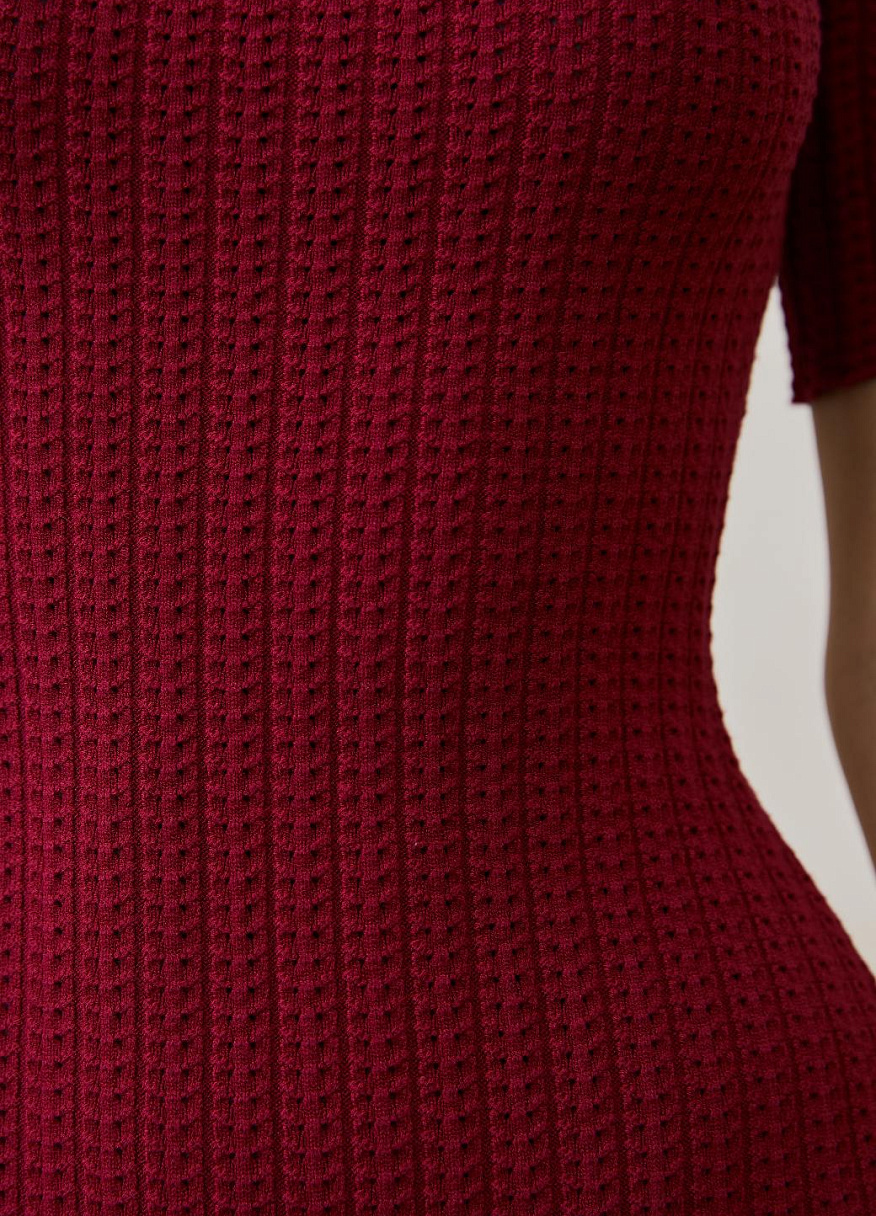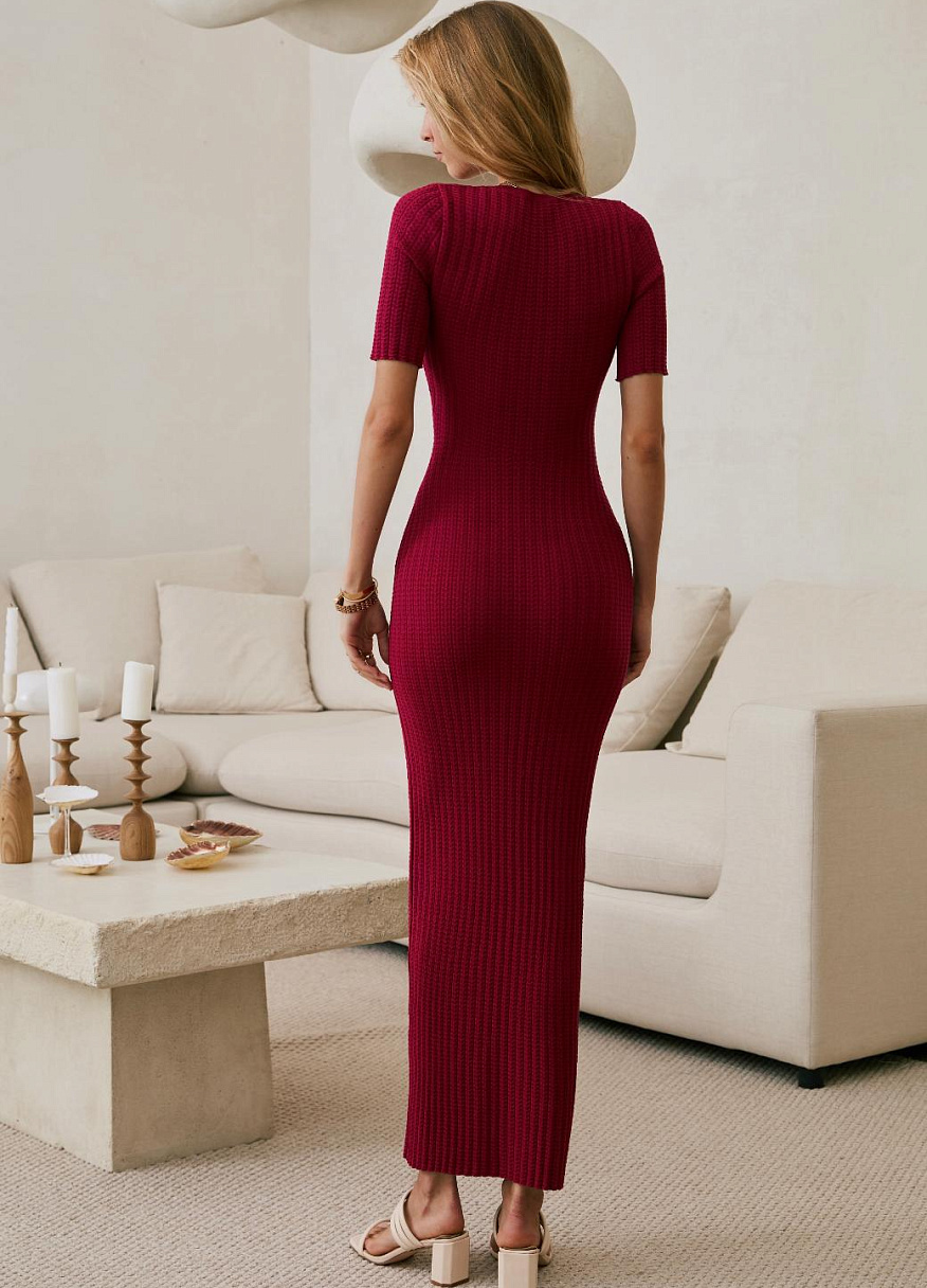 Это не просто трикотаж, это технология, доведённая до совершенства. Благодаря уникальной ажурной вязке и скрытым элементам, платье идеально повторяет линии тела: подчёркивает грудь, плавно очерчивает талию и мягко ложится по пояснице. Всё это — с искусной точностью, но без излишней вычурности.