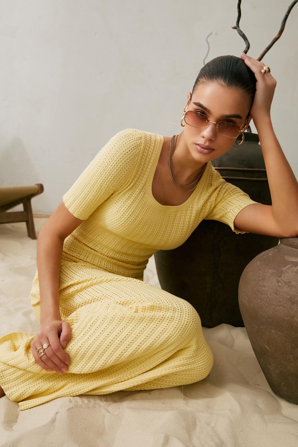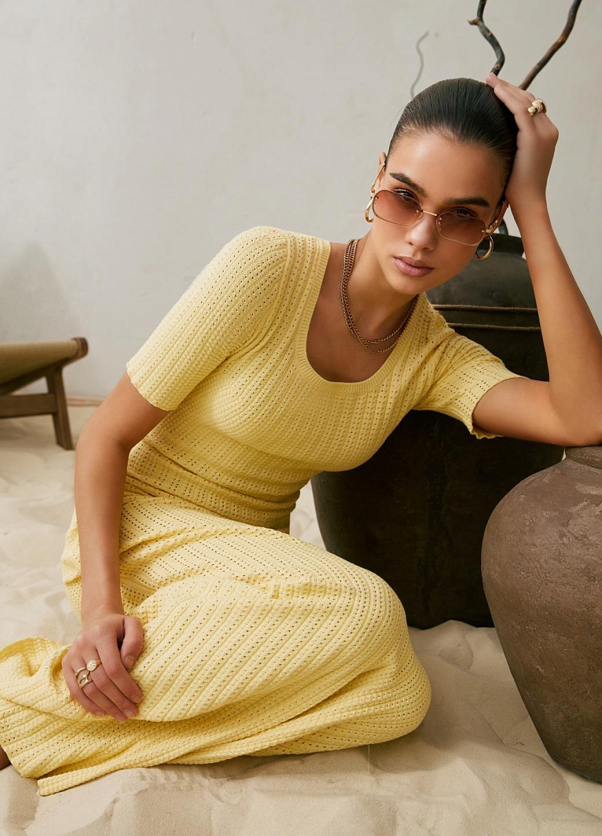 Платье "Сансет" желтое — дизайнерская женская одежда от Яны Лукачер | Российское производство