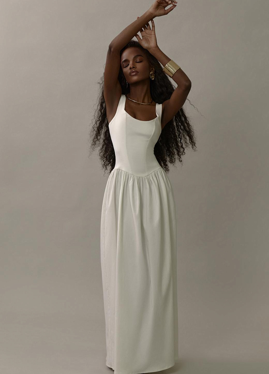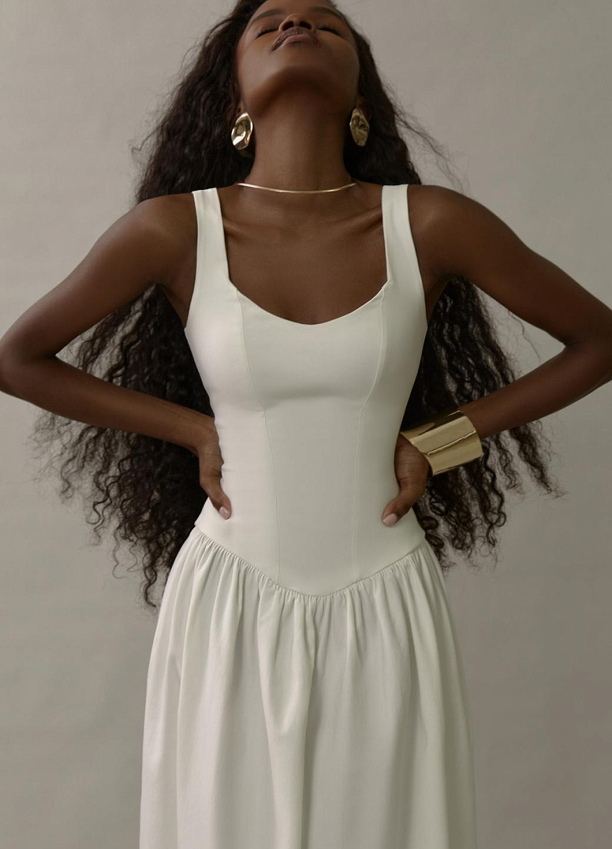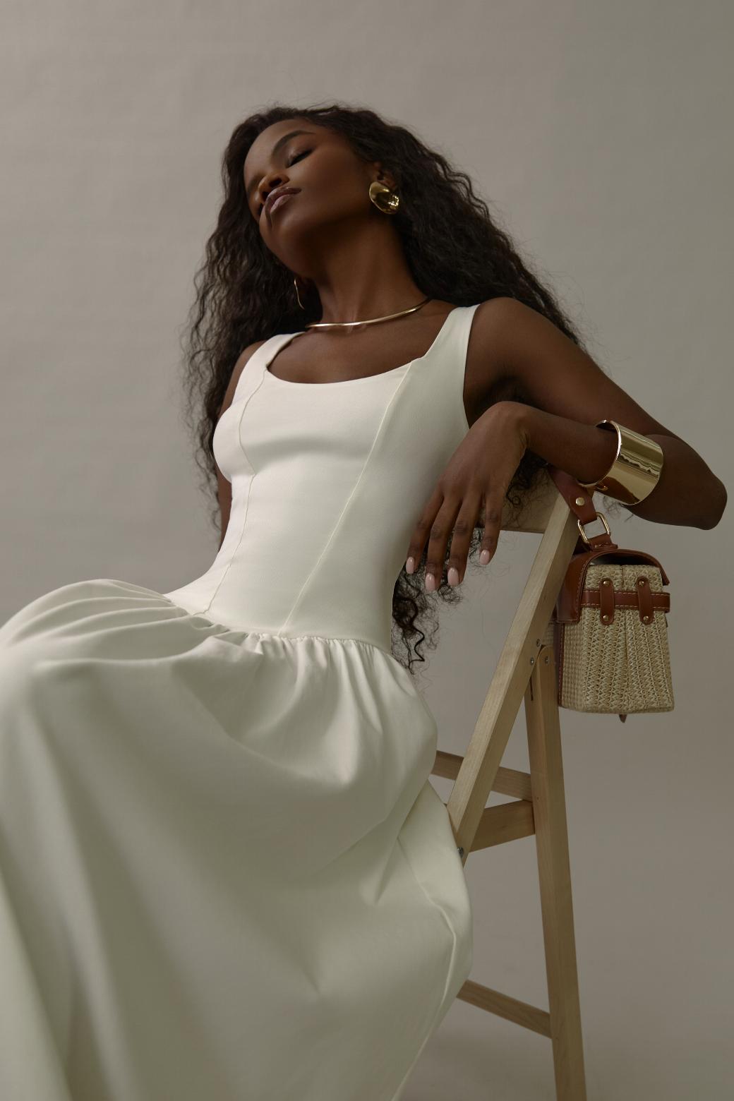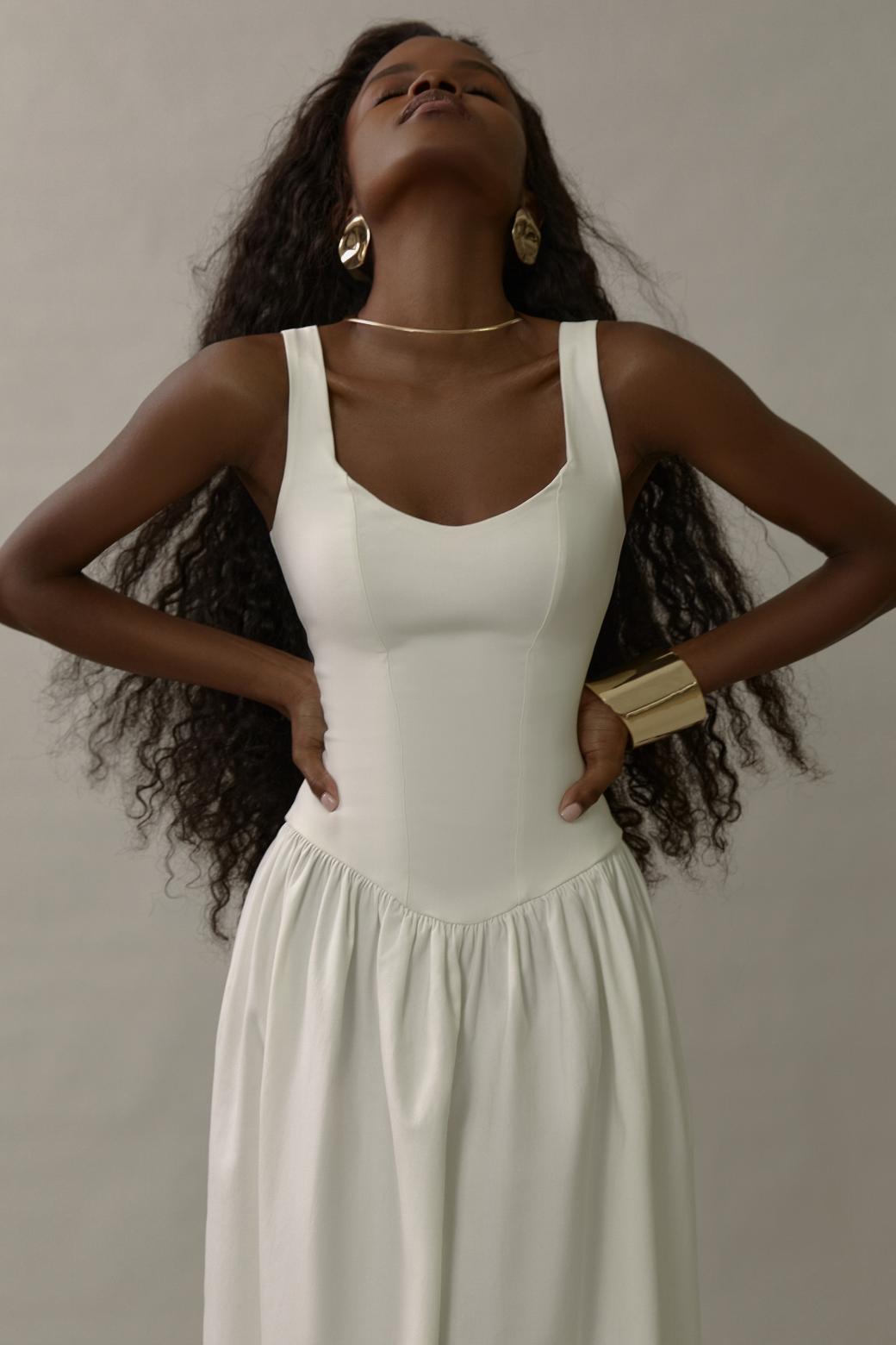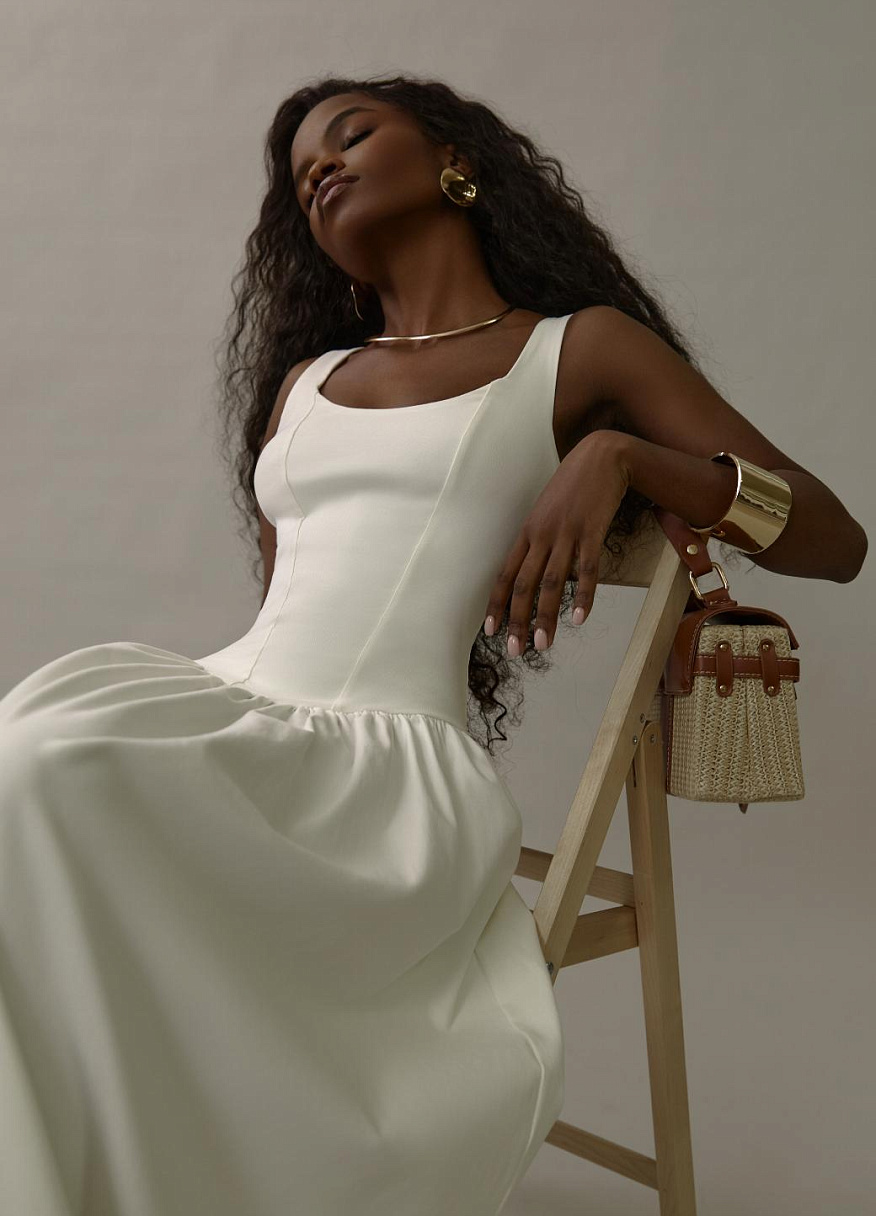 Платье "Тьерри" белое — дизайнерская женская одежда от Яны Лукачер | Российское производство