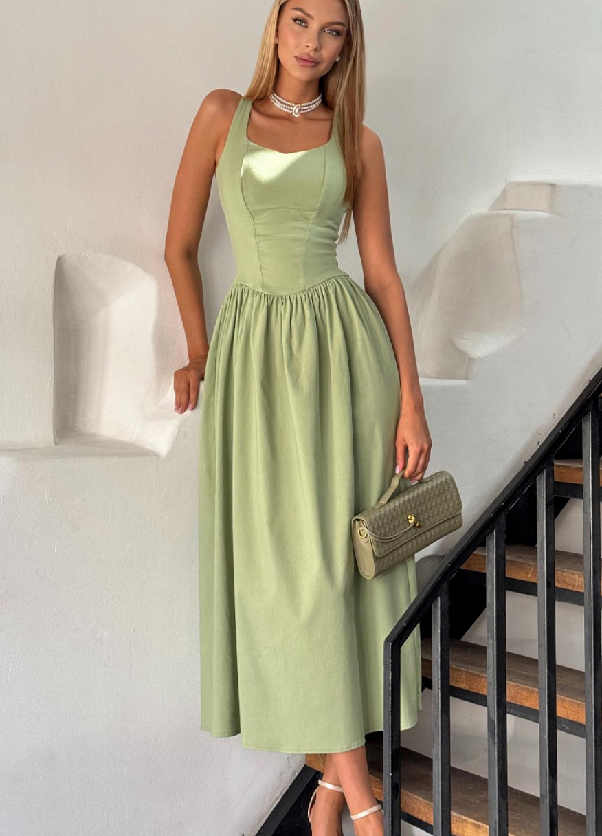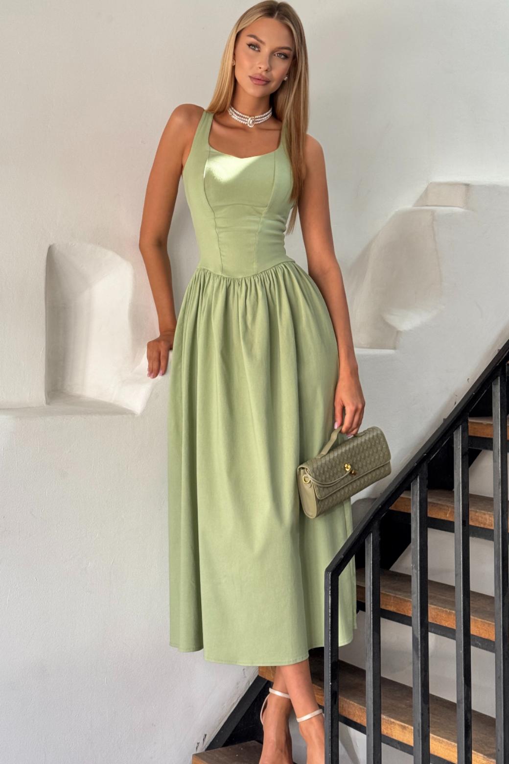Платье "Тьерри" фисташковое — дизайнерская женская одежда от Яны Лукачер | Российское производство